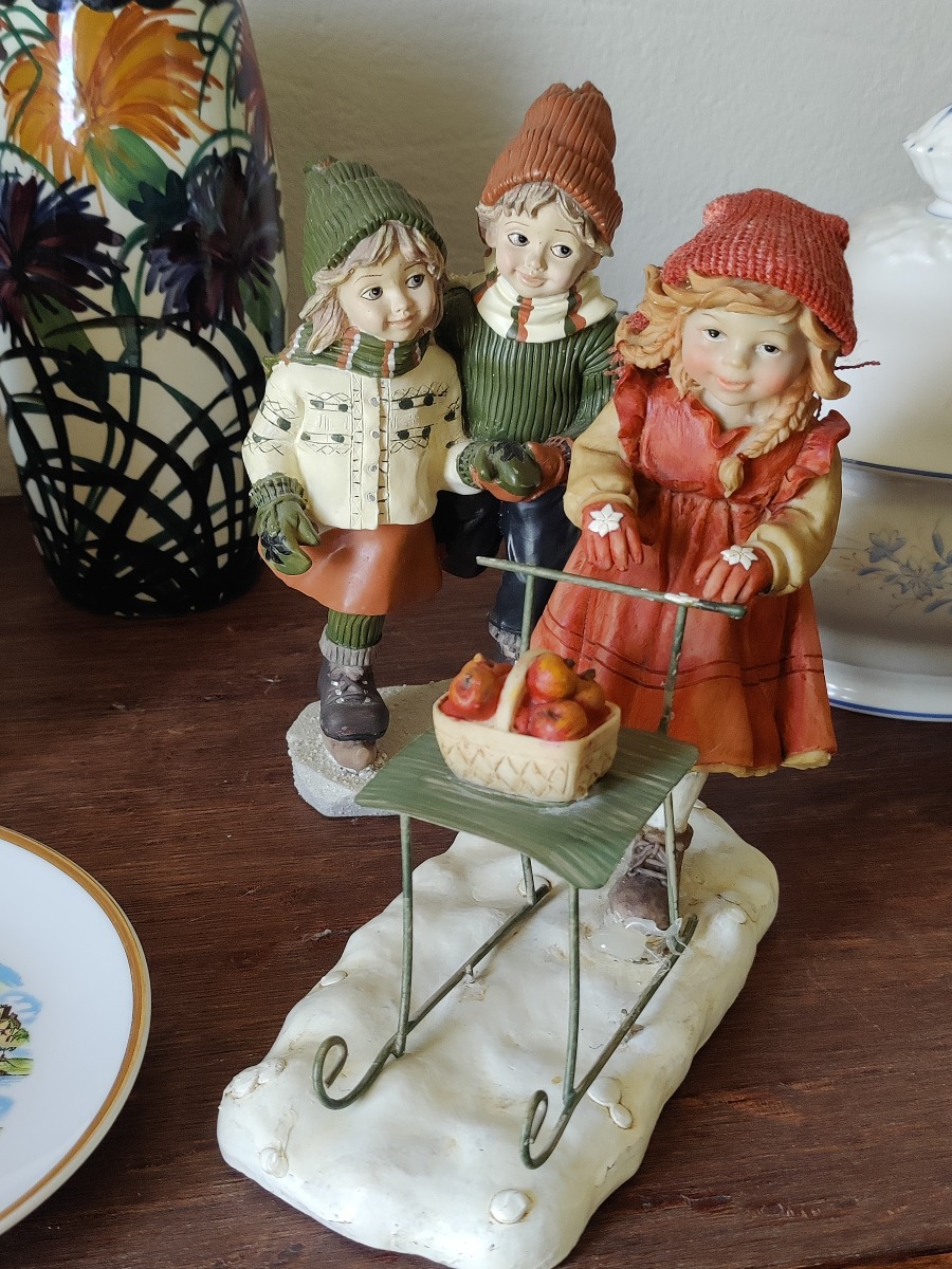 samt 2 vinterbørn figurer, en er limet. Pæn stand