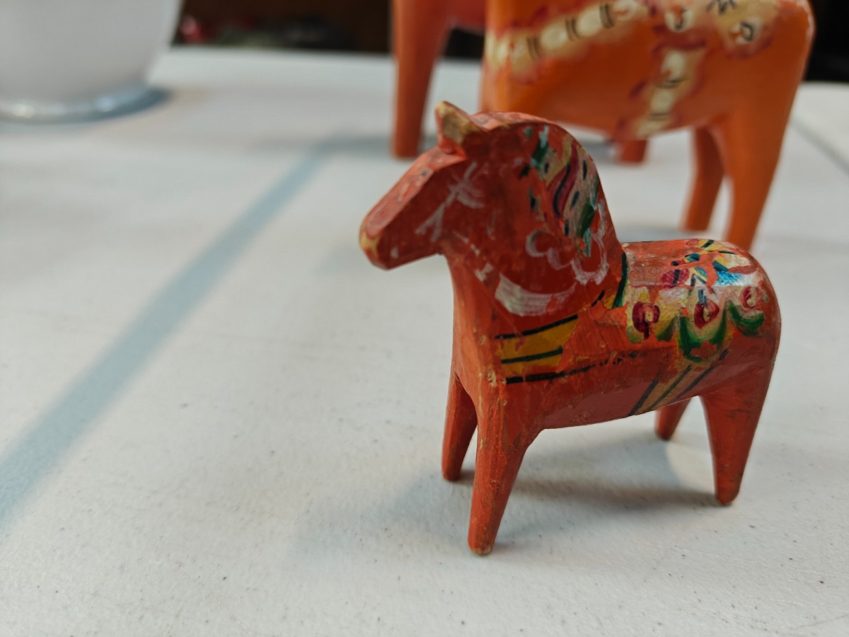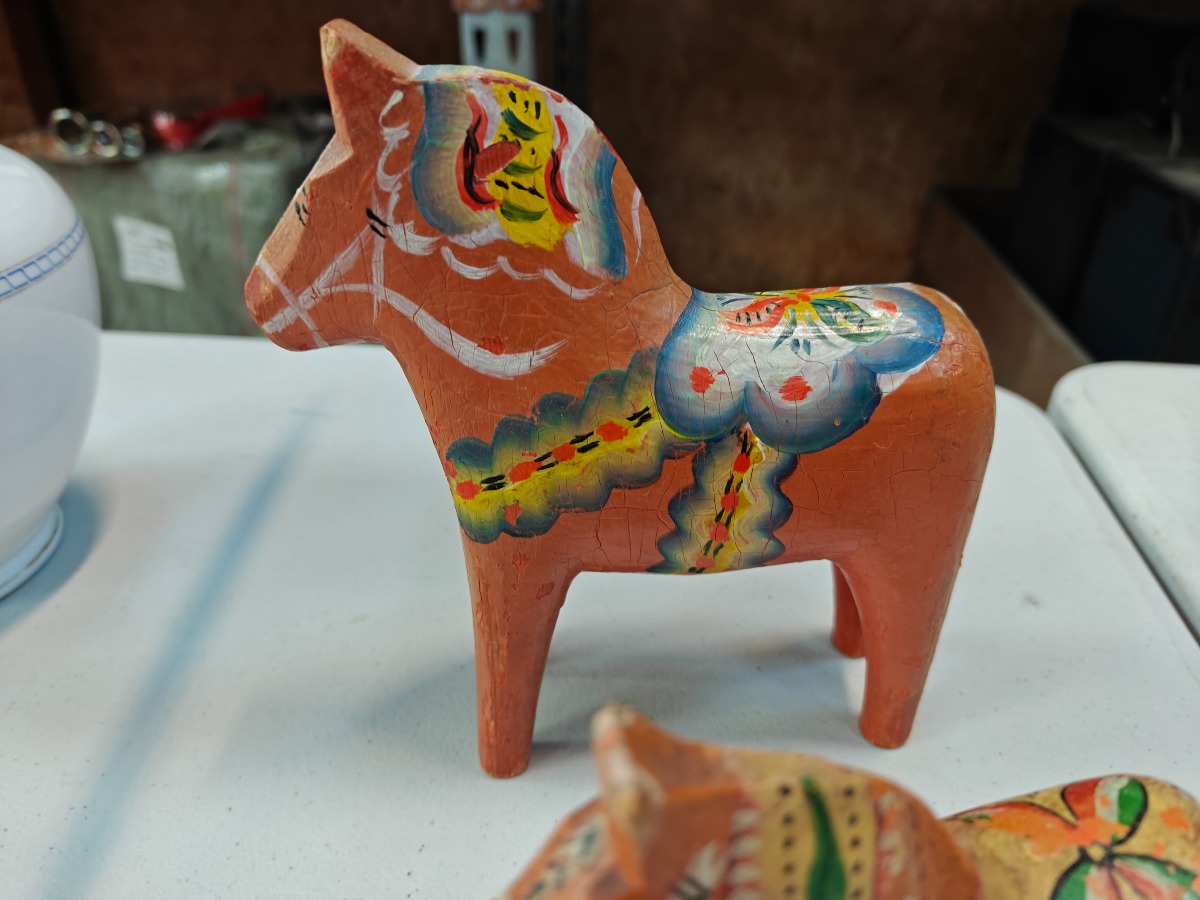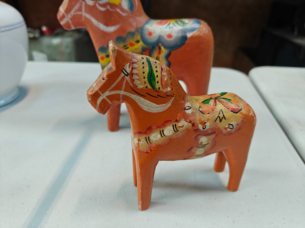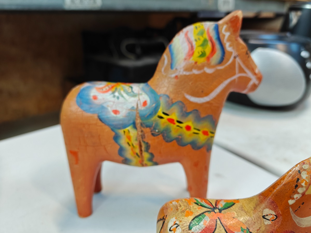 3 Dalarheste. Fremstår med alders relateret patina. H. for største 18 cm.