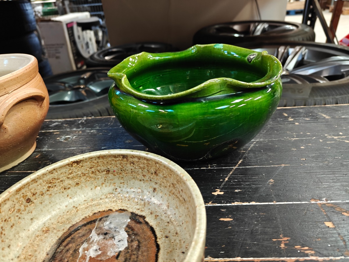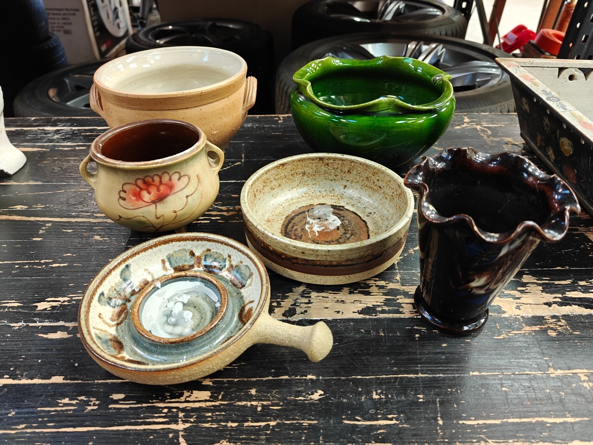 6 dele keramik. Bl.a. Søholm stage og lille vase med flæsekant. H. 12,5 cm.