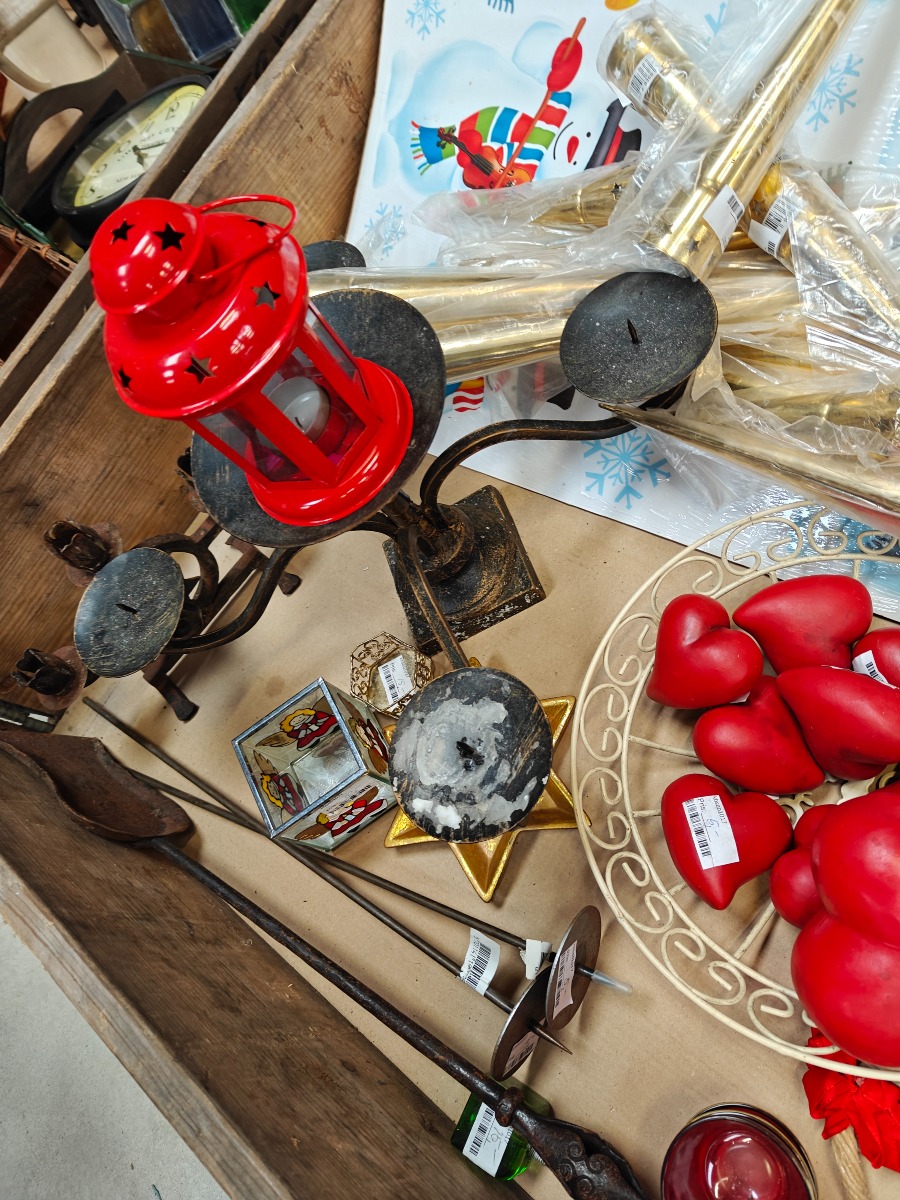 Diverse julepynt samt stager, vinduesdekorationer m.m.