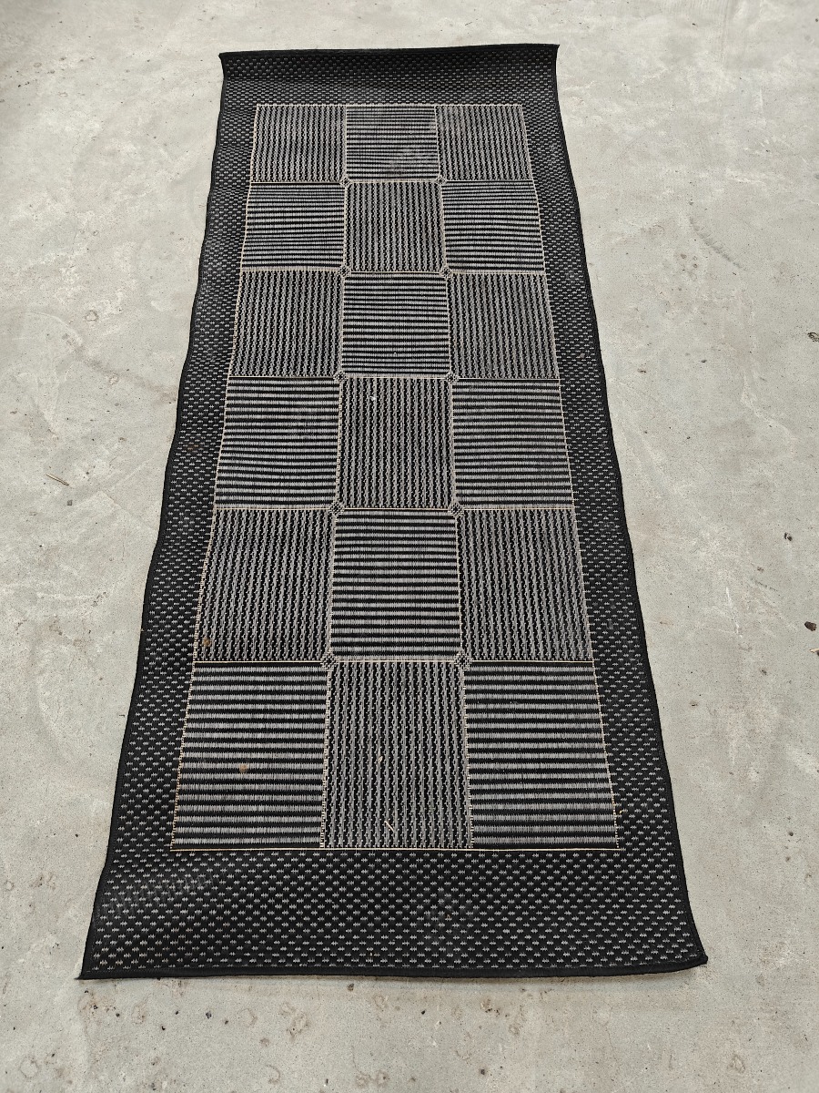 Forligger i grå/sort 195 x 78 cm. Enkelte pletter.