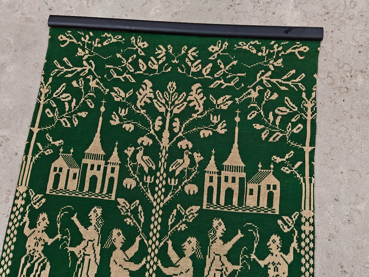 Håndbroderet vægtæppe 135 x 90 cm.