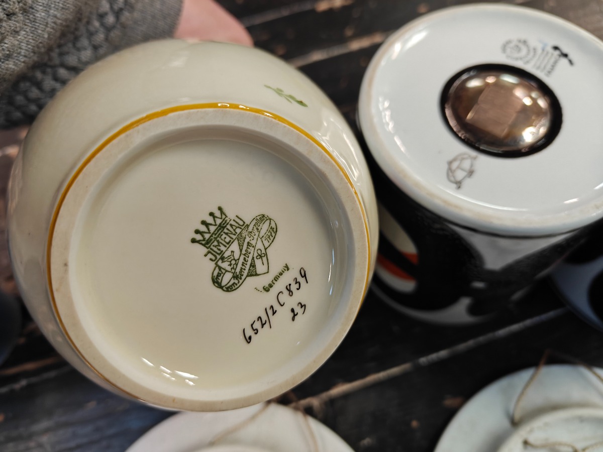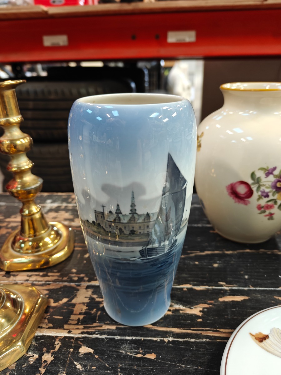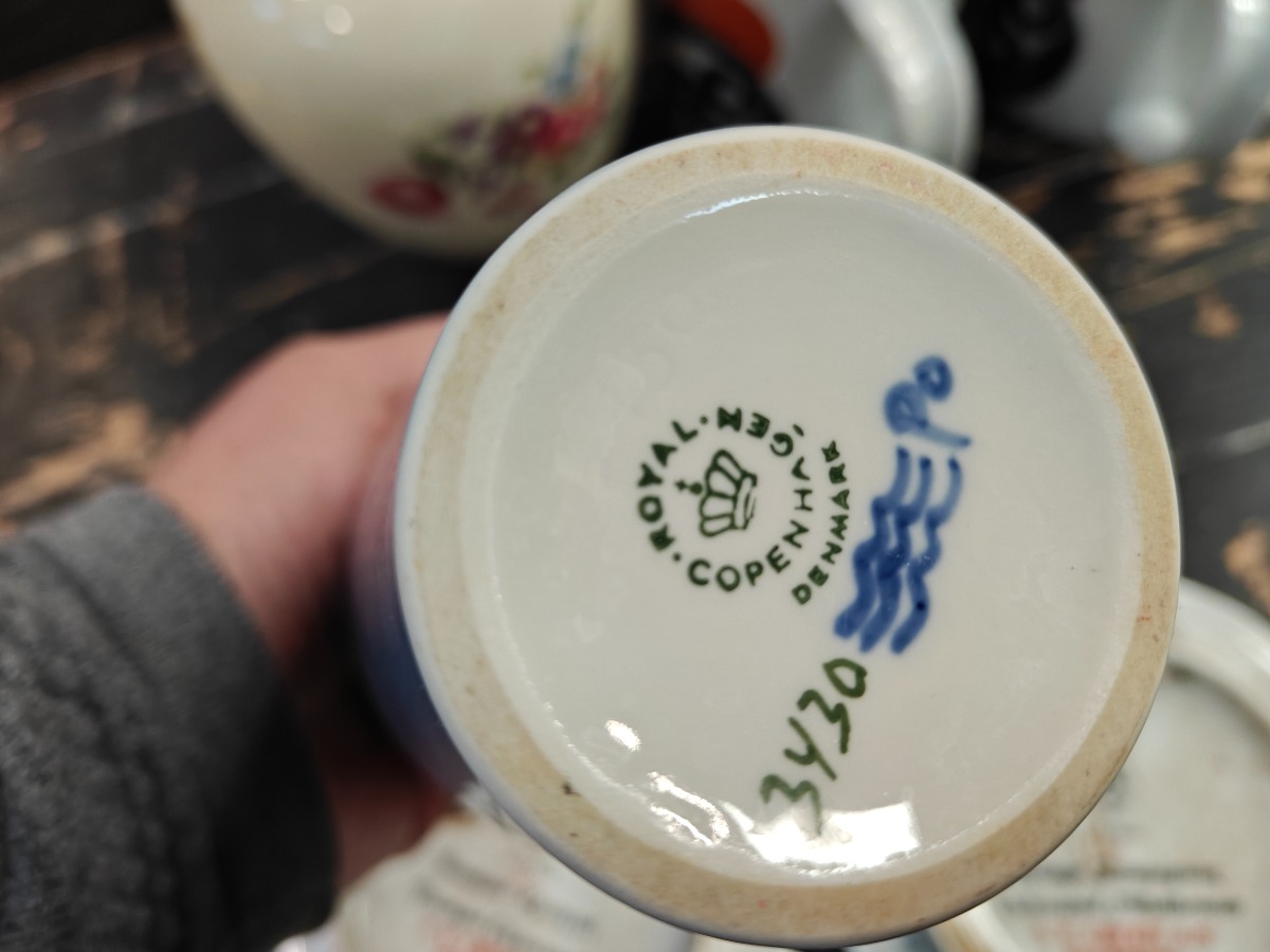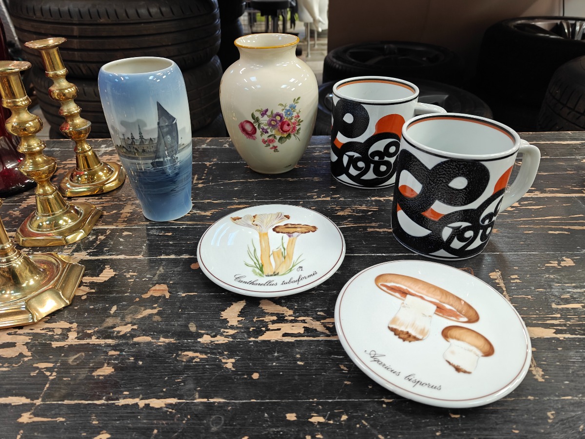 Kgl. P. B&G m.m.2 store årskrus med gravering i bunden, vase, 2 platter samt tysk vase.