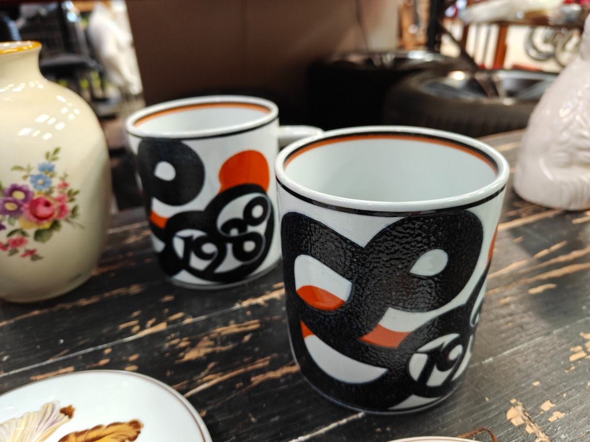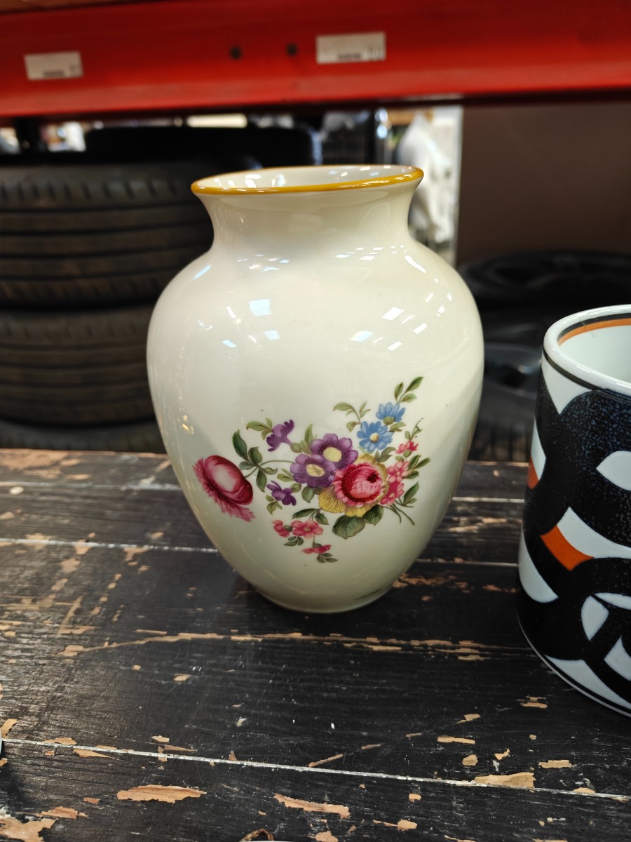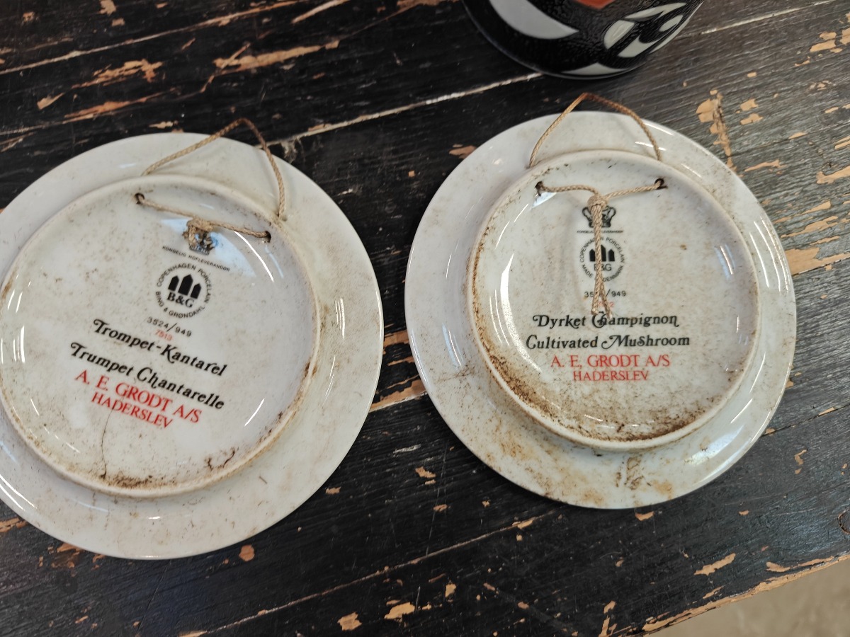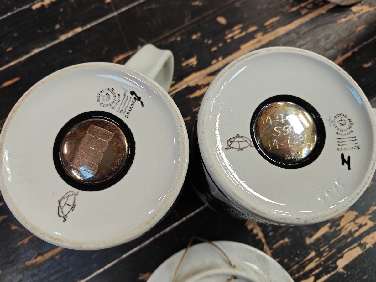 Kgl. P. B&G m.m.2 store årskrus med gravering i bunden, vase, 2 platter samt tysk vase.