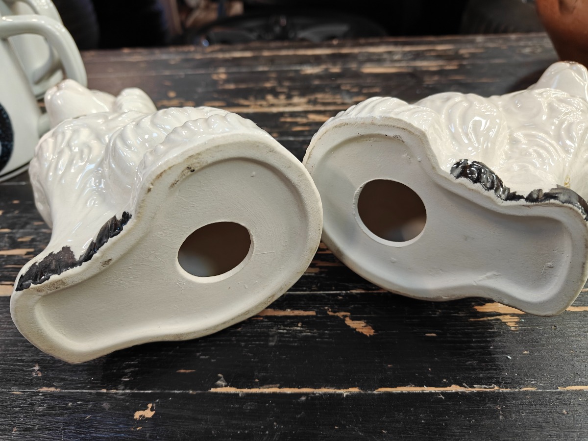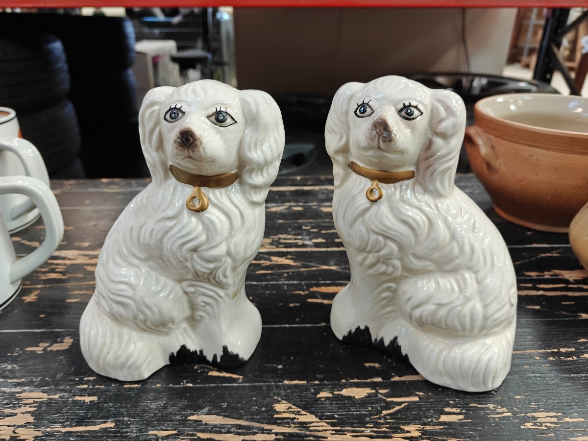 Replica Staffordshire hunde af fajance. Mærkat med Marstal. H. 20 cm.