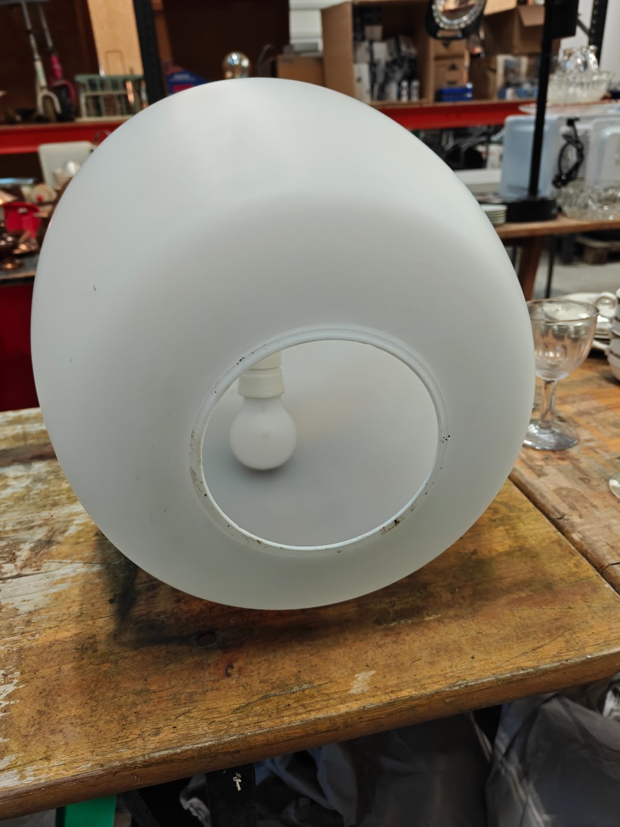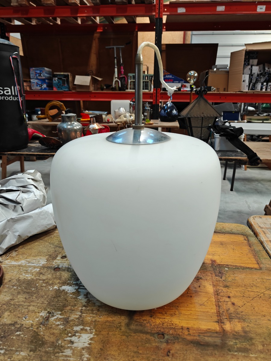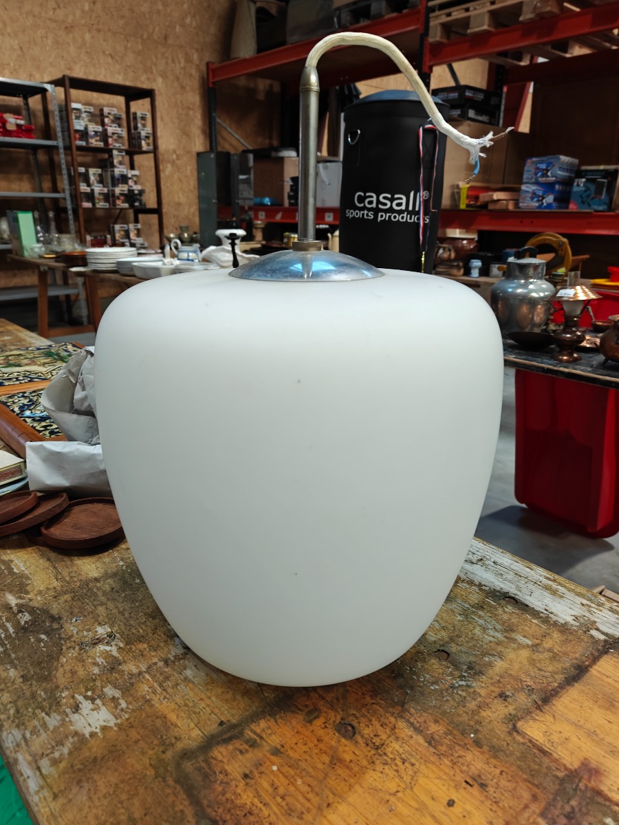 Stor loftpendel af opalglas. med forkromet stel. Fabrikaet ukendt. H. 30 cm.