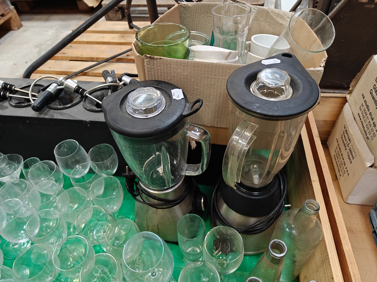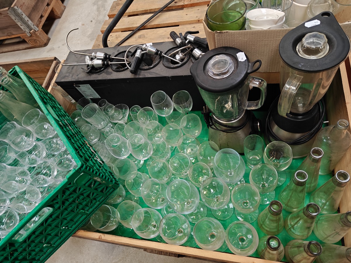 Stor samling glas samt Cave Vinum vinkøler, model nr. CV-6 og 2 blendere.
