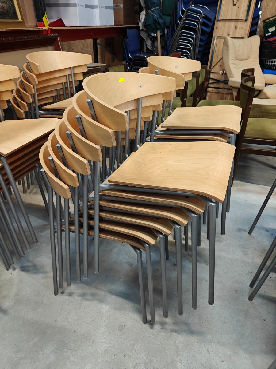 6 stk. Kinnarps Riff stabelstole. Grålakeret stel med sæde og ryg af formspøndt bøgefiner. Mindre kanthak eller andre småskader på sæde og ryg kan forekomme.