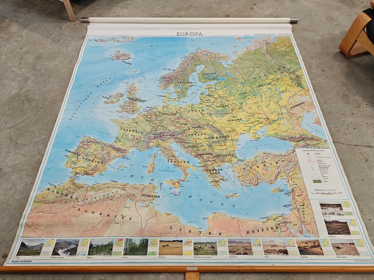 Europakort 1: 3.000.000. fra Nordisk Korthandel. 200 x 200 cm. Minimale brugsspor.