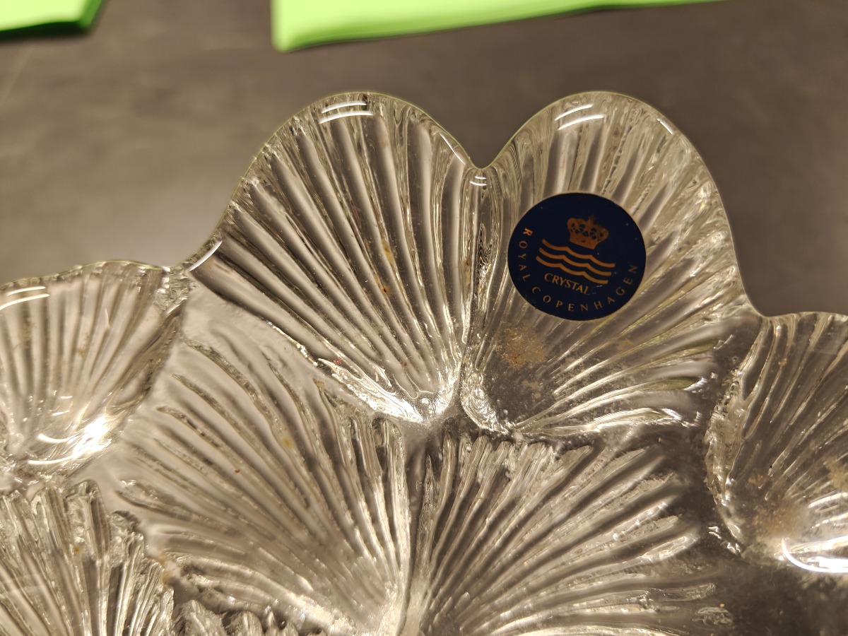 Holmegaard muslingeskål af presset glas. Ø. 23 cm.