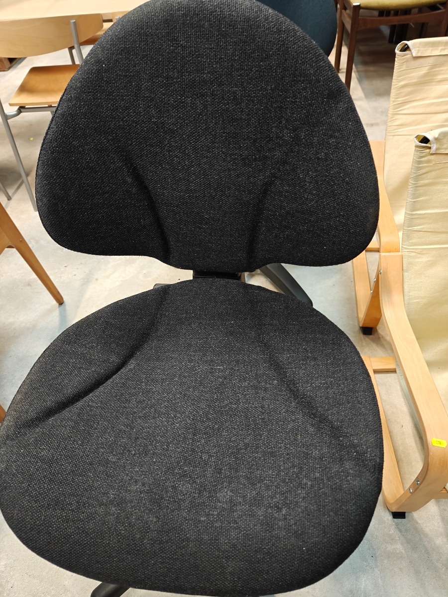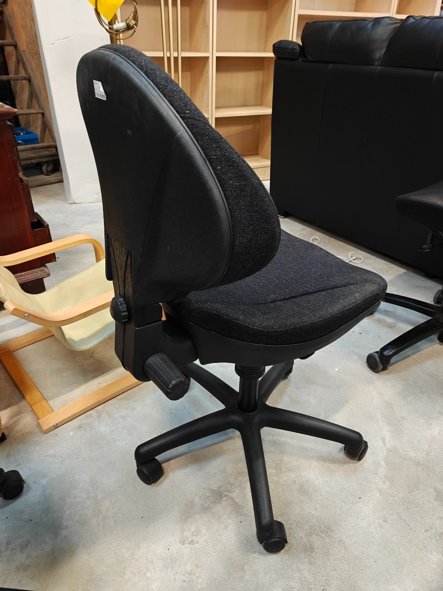 Kontorstol på drejefod med gasløft. Sort betræk med lidt skjolder.