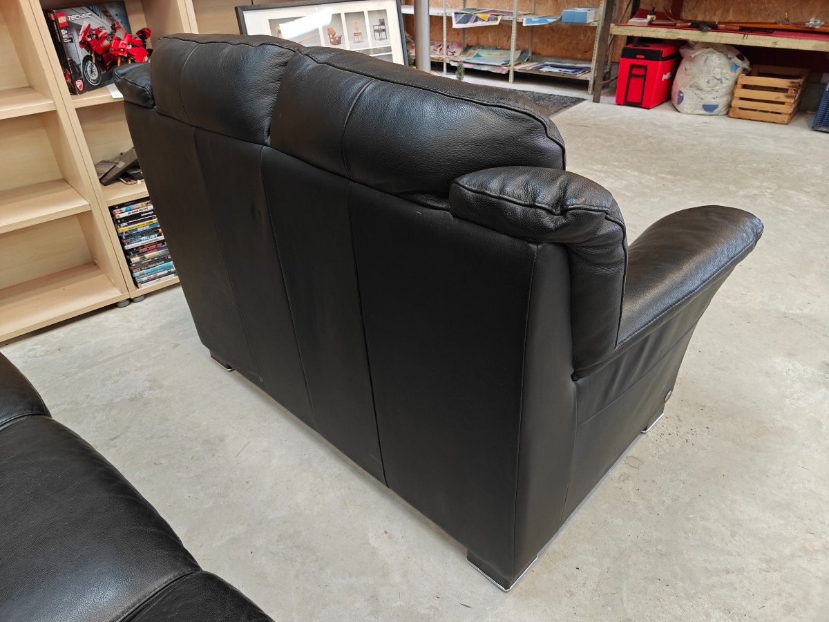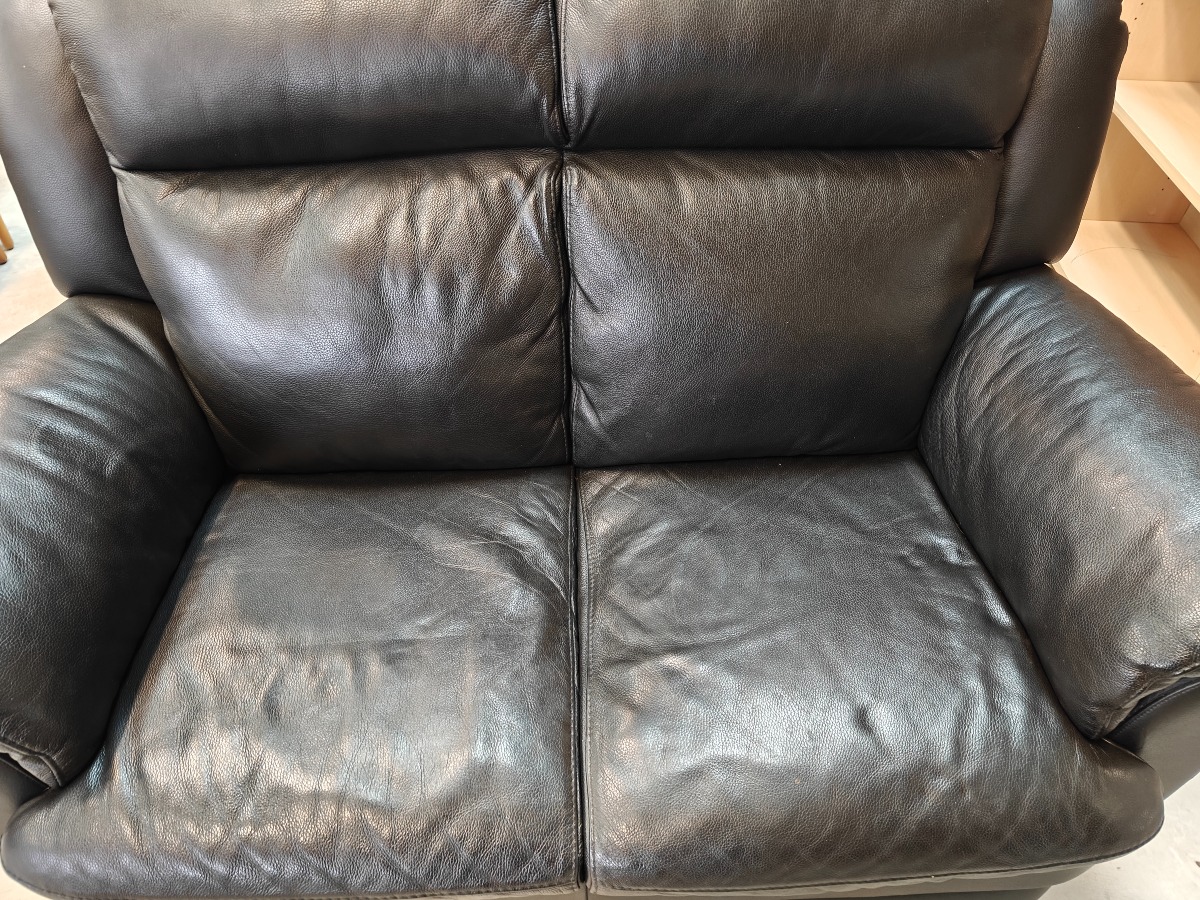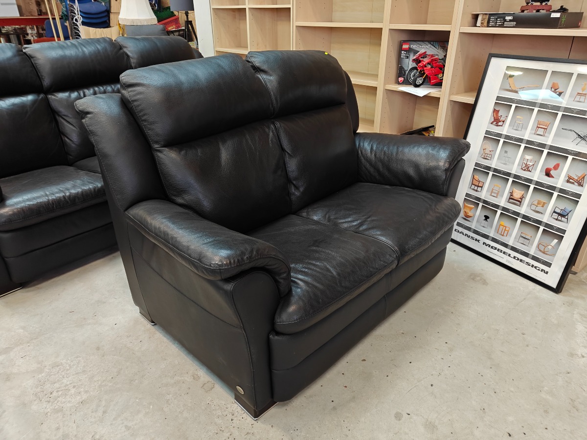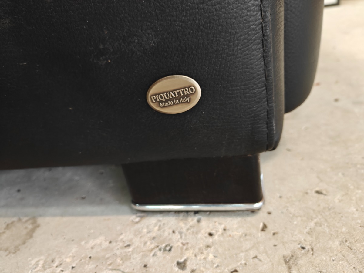 Piquattro 2 pers. sofa med sort læder. Alm. brugsslid. H. 105, B. 150, D. 90 cm.