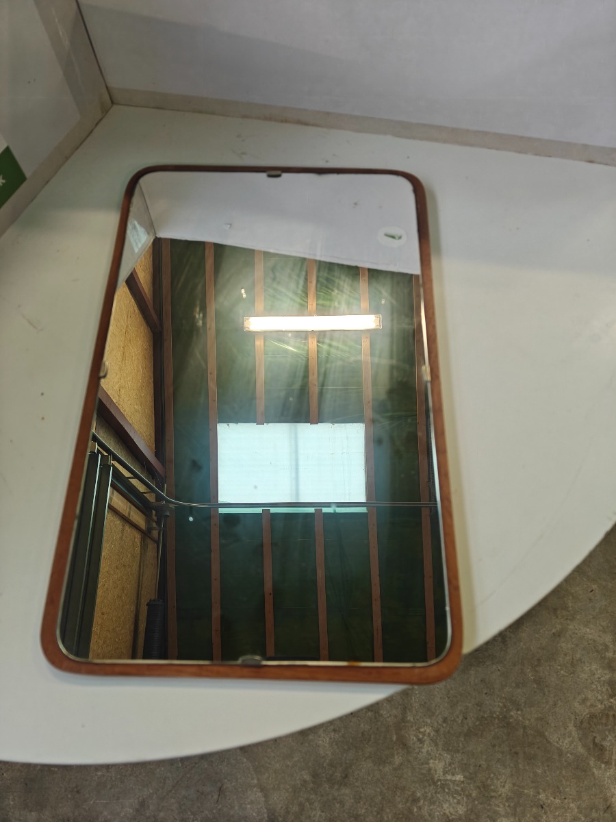 Rektangulært spejl med teakramme