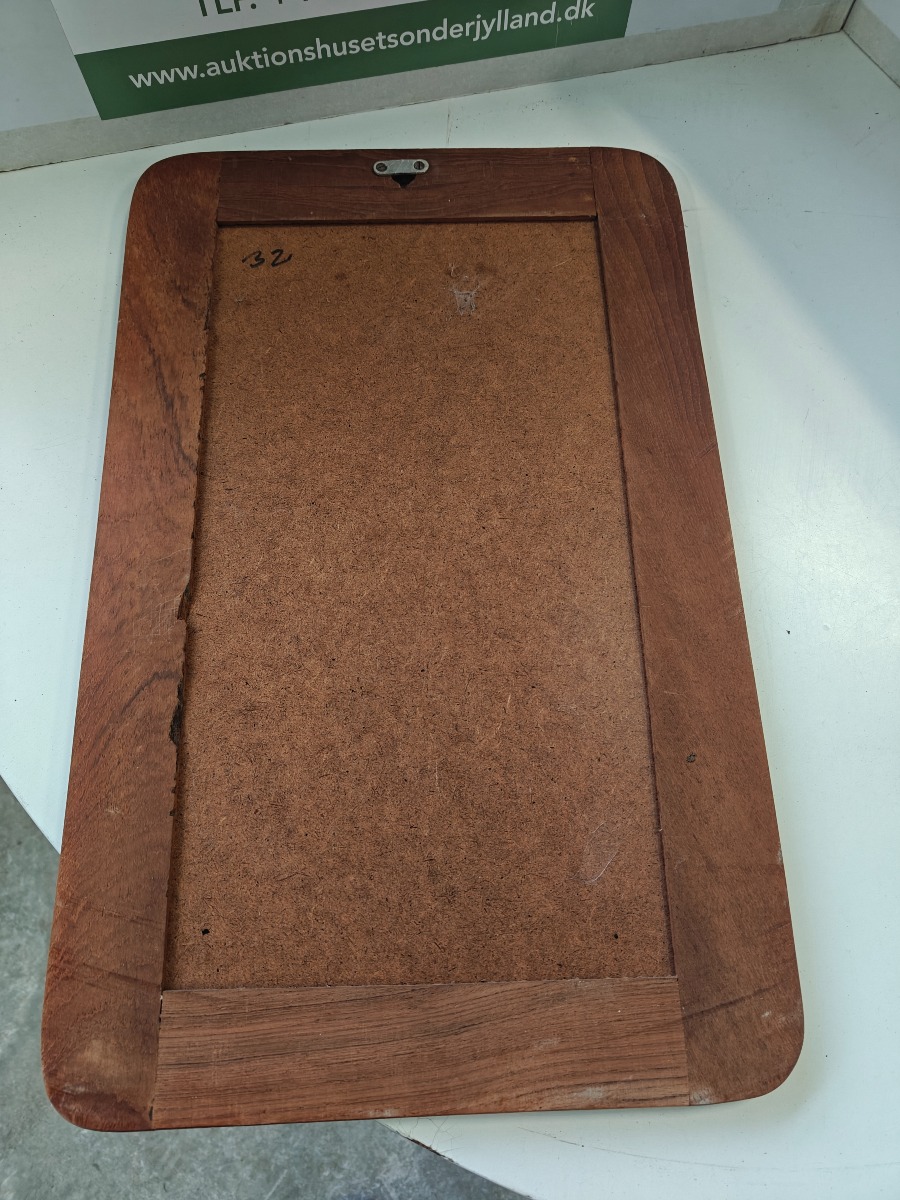 Rektangulært spejl med teakramme. 50 x 30 cm.