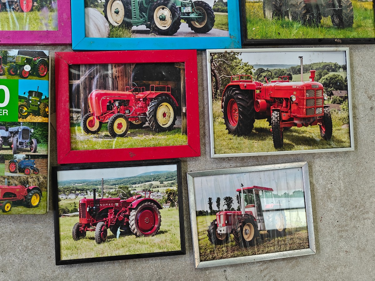 Udo Paulitz, 500 traktorer. rigt illustreret bog. Hertil 14 indrammede billeder af traktorer. Fugtskader på billeder forekommer.