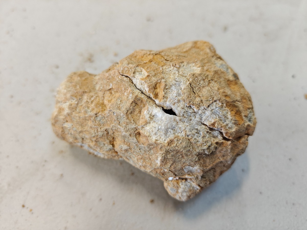 Brudt snekvarts geode. Mål på længste sted. 8 cm.