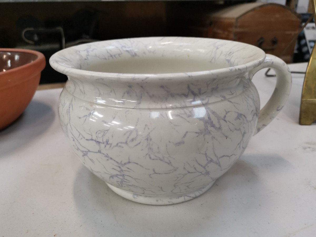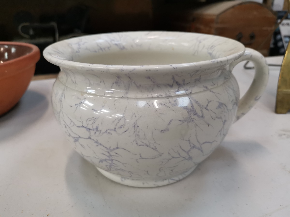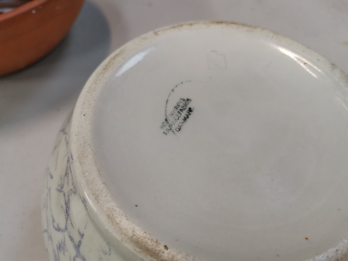 Københavns Fajancefabrik (Aluminia) natpotte med blåmalet dekoration.