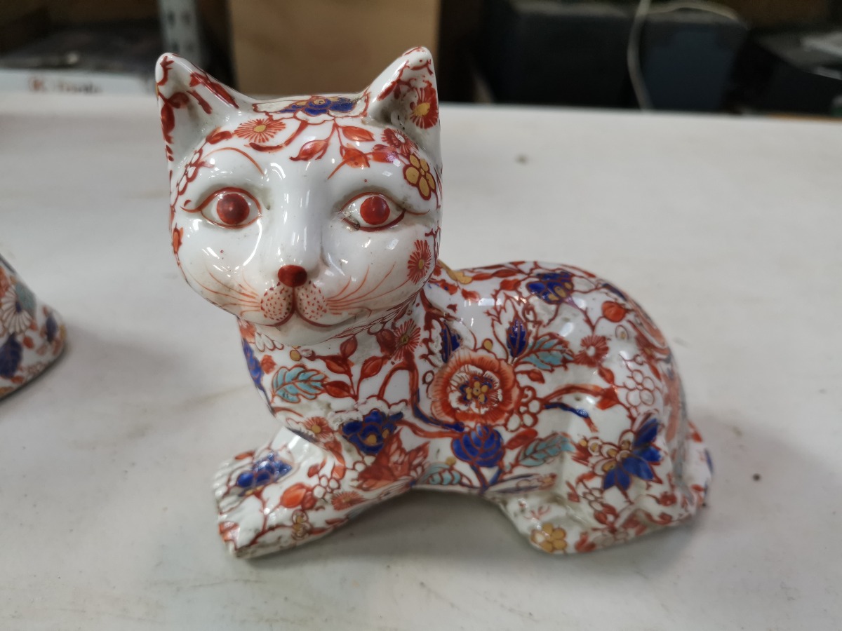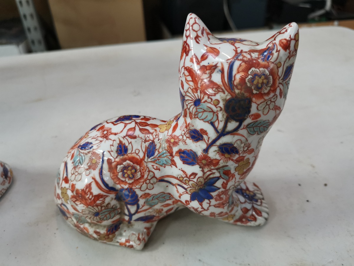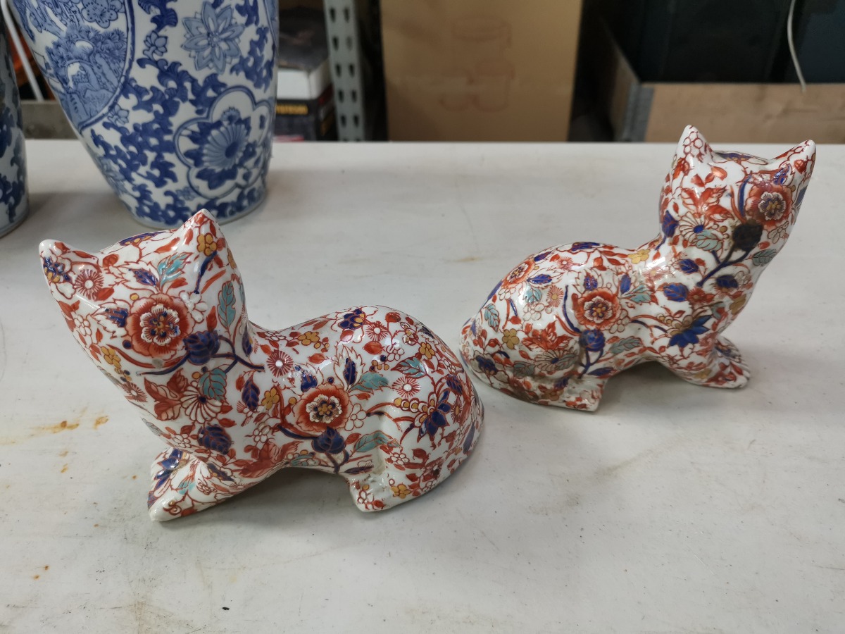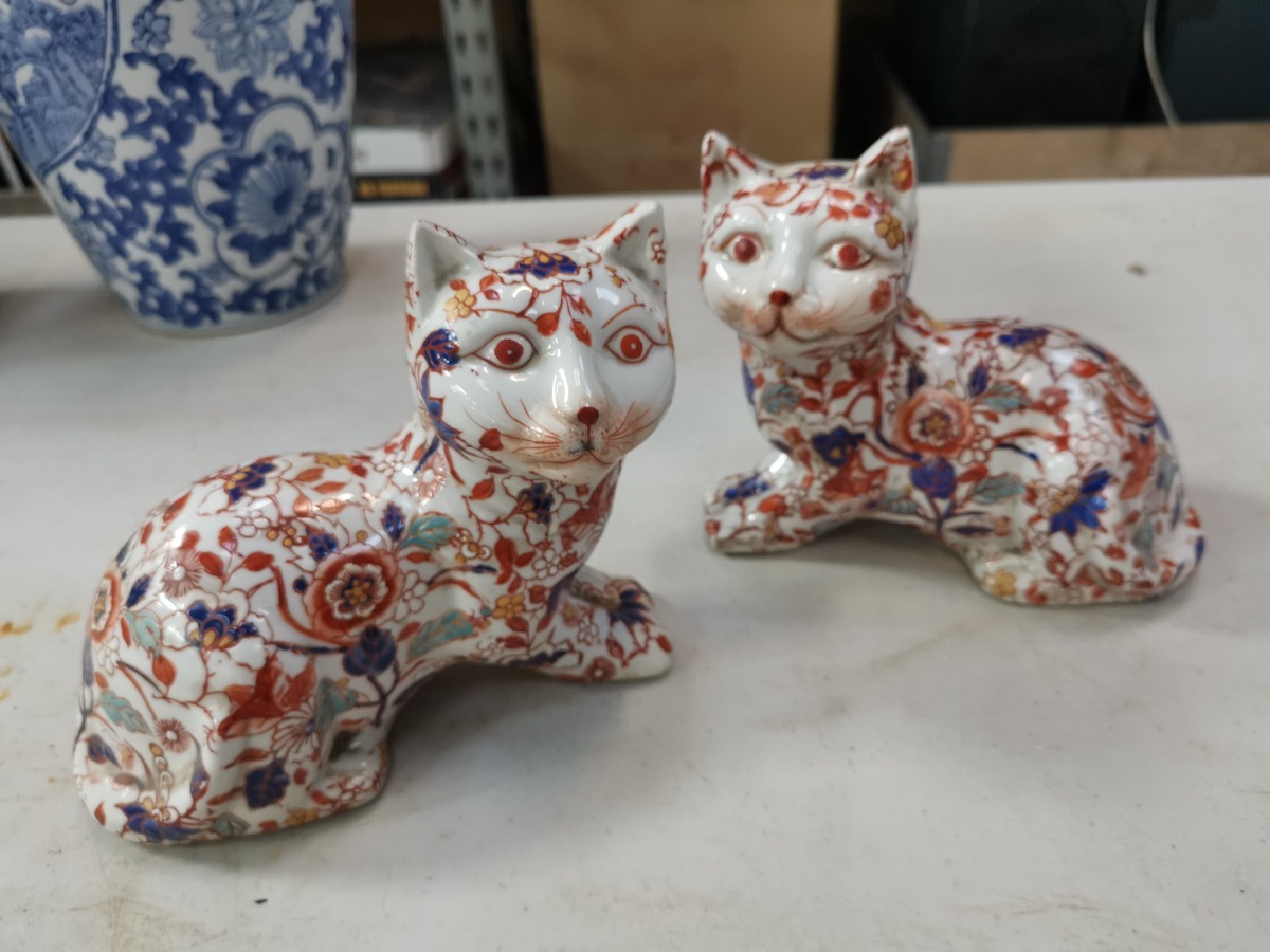 Par Imari-dekorede katte af porcelæn.