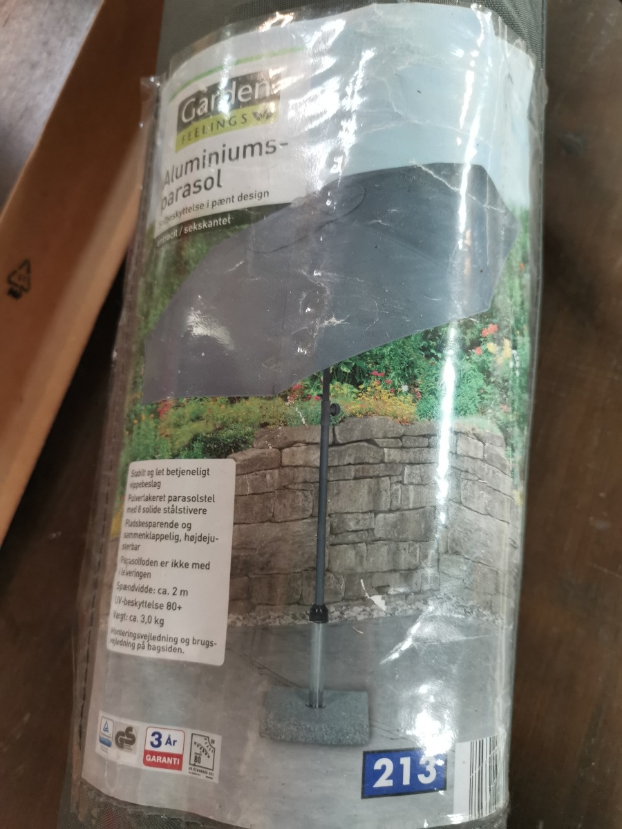 Parasol antrasitgrå. Ø. ca. 2 m.