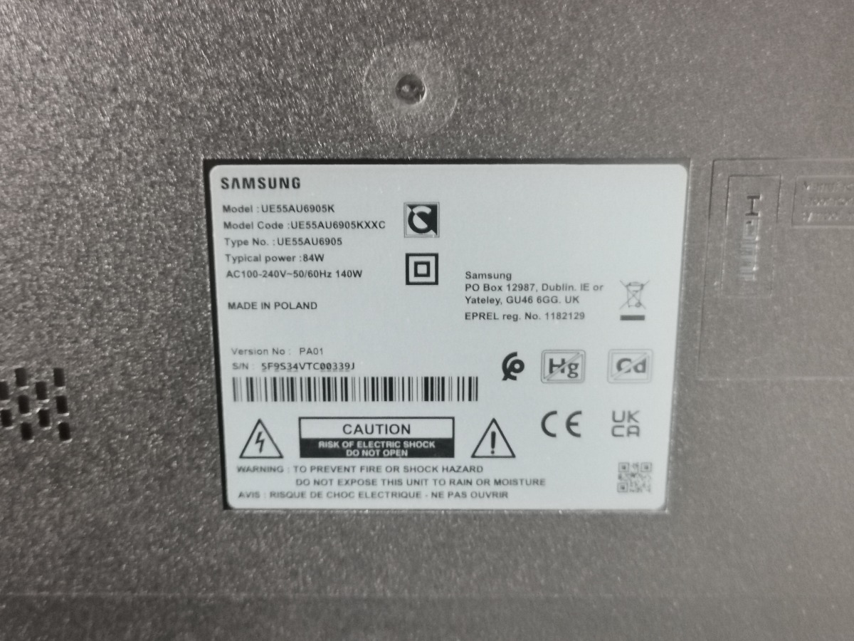 Samsung fladskærm 55" model UE55AU6905K. Remote med skadeder. Netledning mangler. Vi garanterer ikke for funktionaliteten.