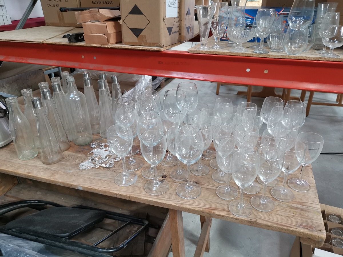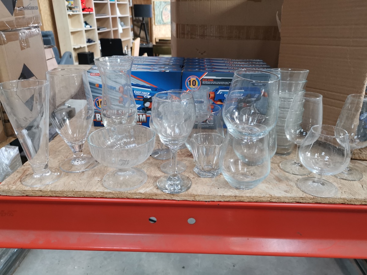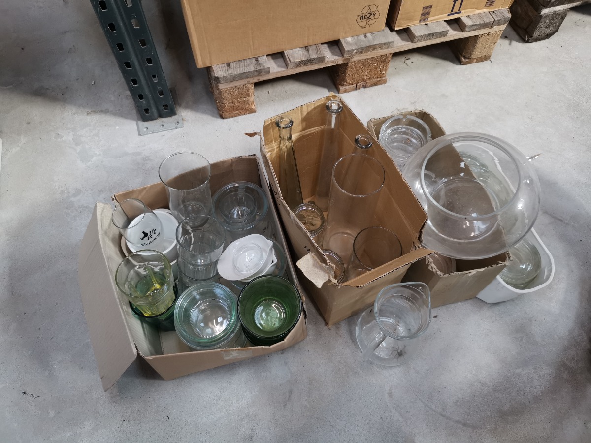 Stor samling drikkeglas m.m. Mange forskellige slags. vandkander, askebægre m.m.