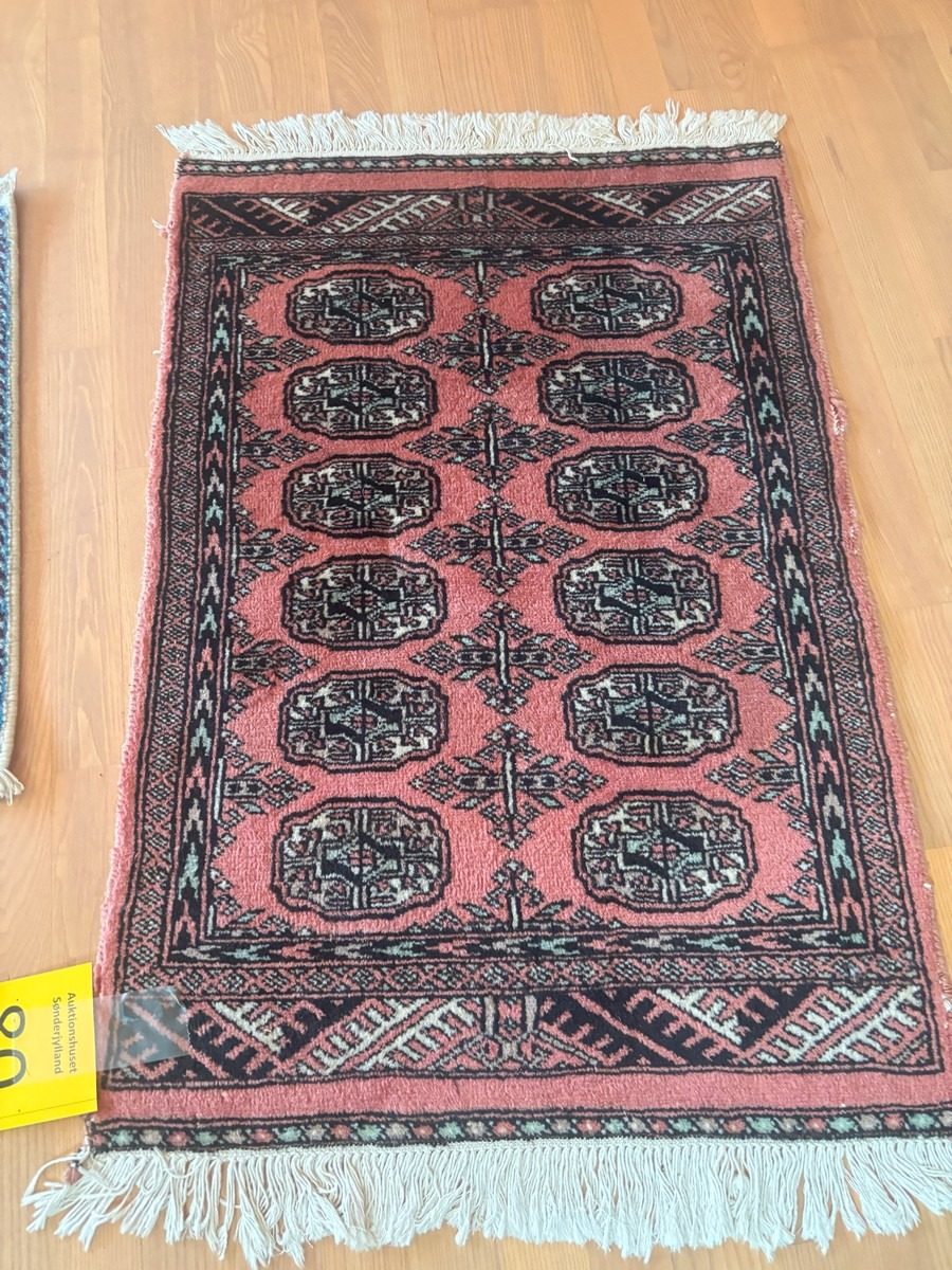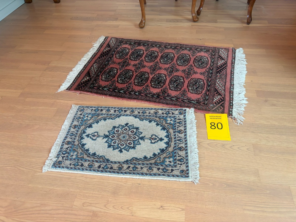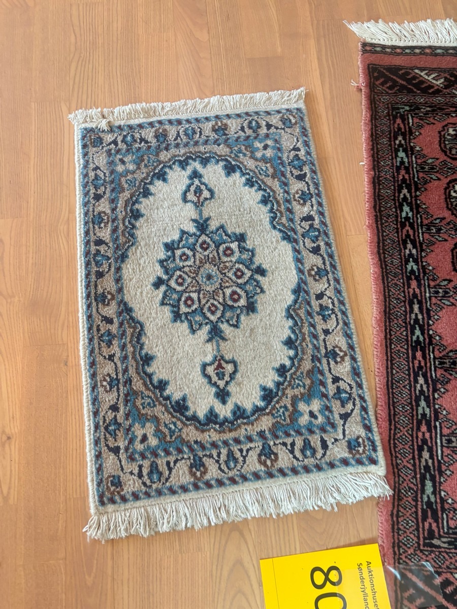 2 små orientalske tæpper. Nain og Bochara. Største 90 x 65 cm.