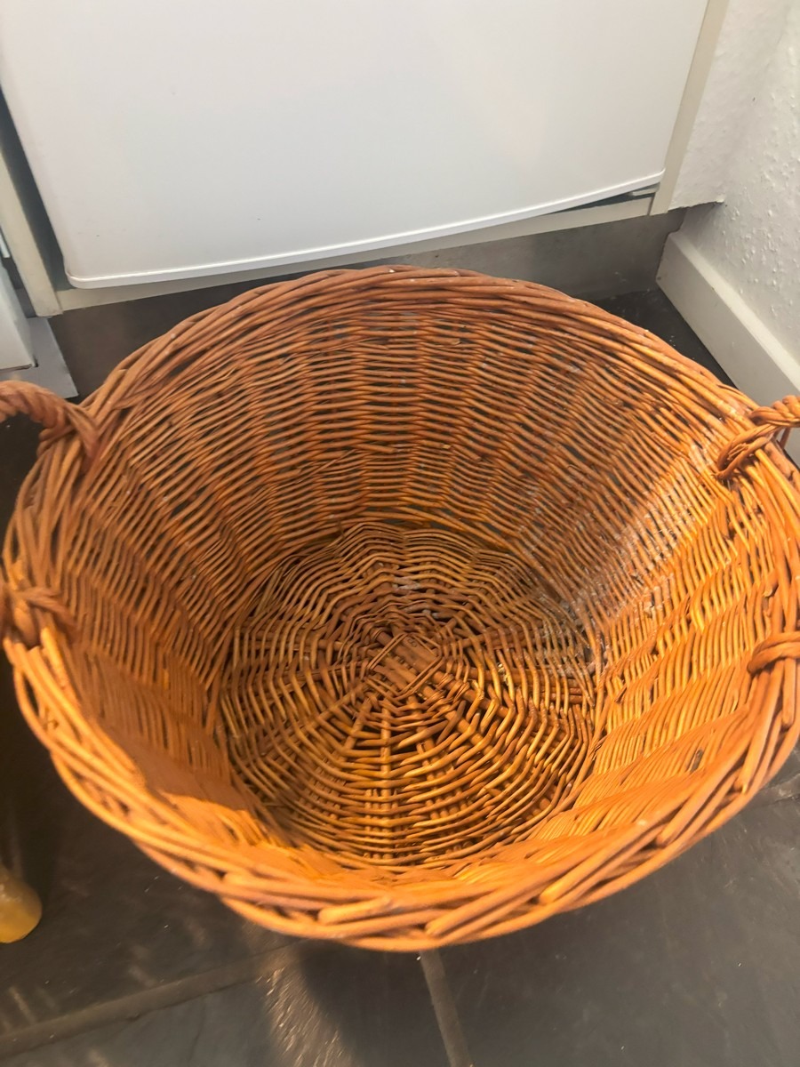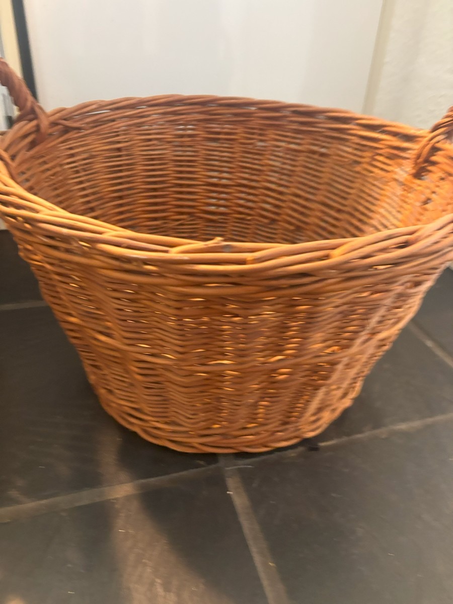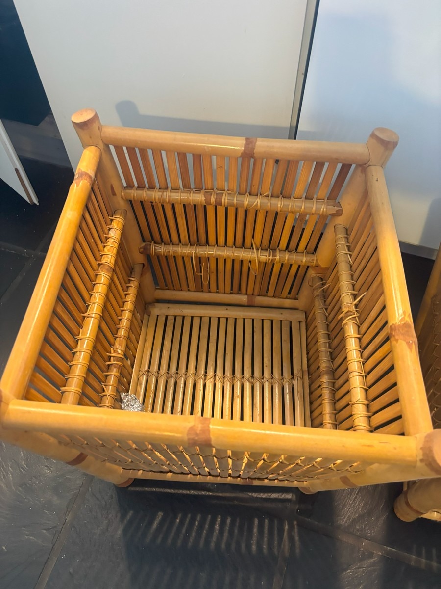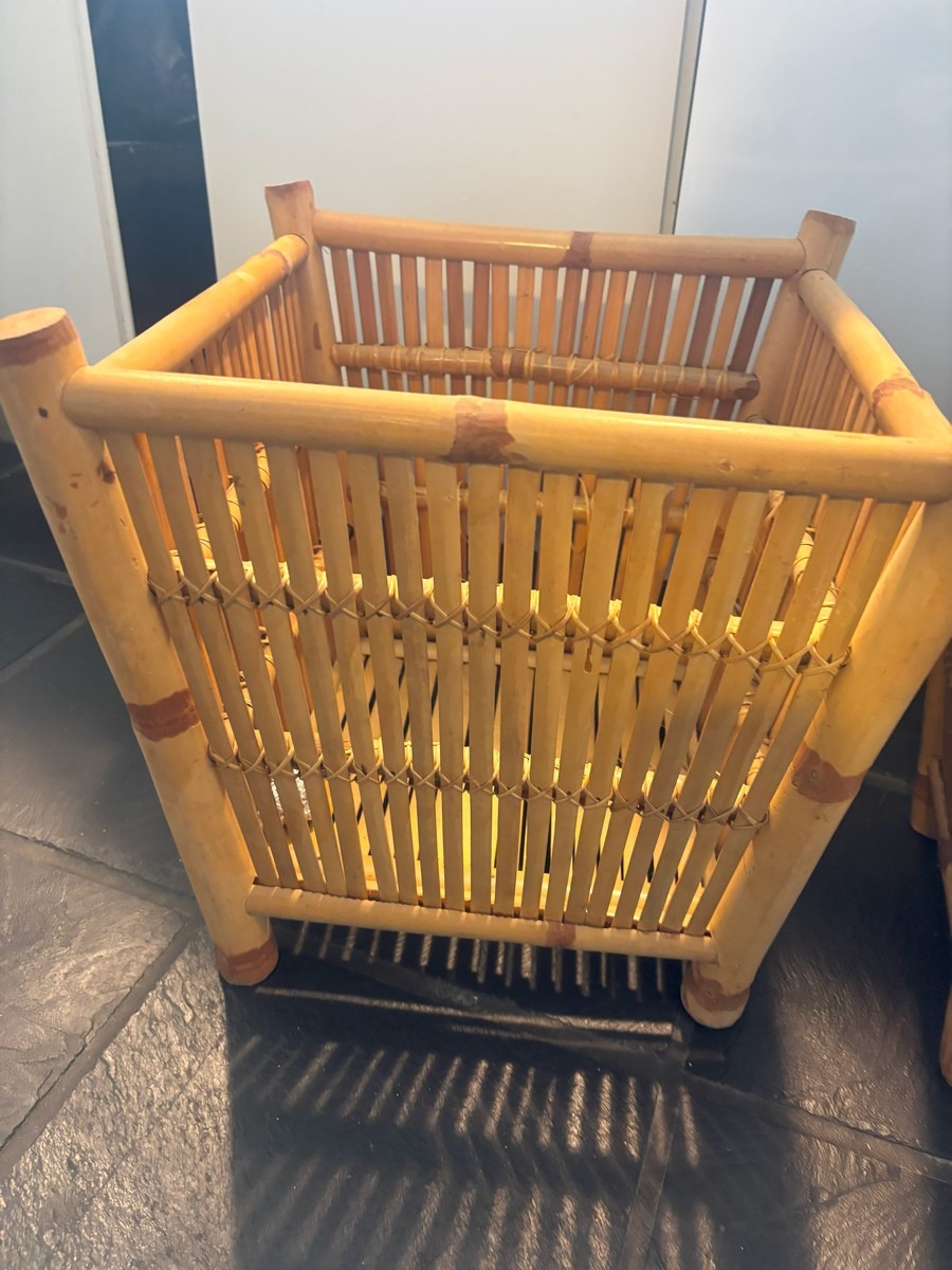 3 kurve. 2 kvadratiske af bambus og rund kurv af rødpil. største til sammenligning. 38 cm.