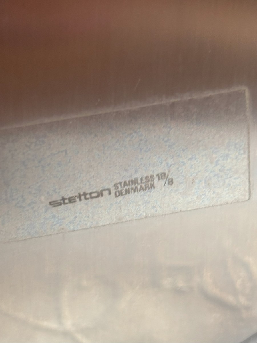 Arne Jacobsen Cylinda Line lille isspand og tang. Fremstillet af Stelton. H. 11, Ø. 13 cm.