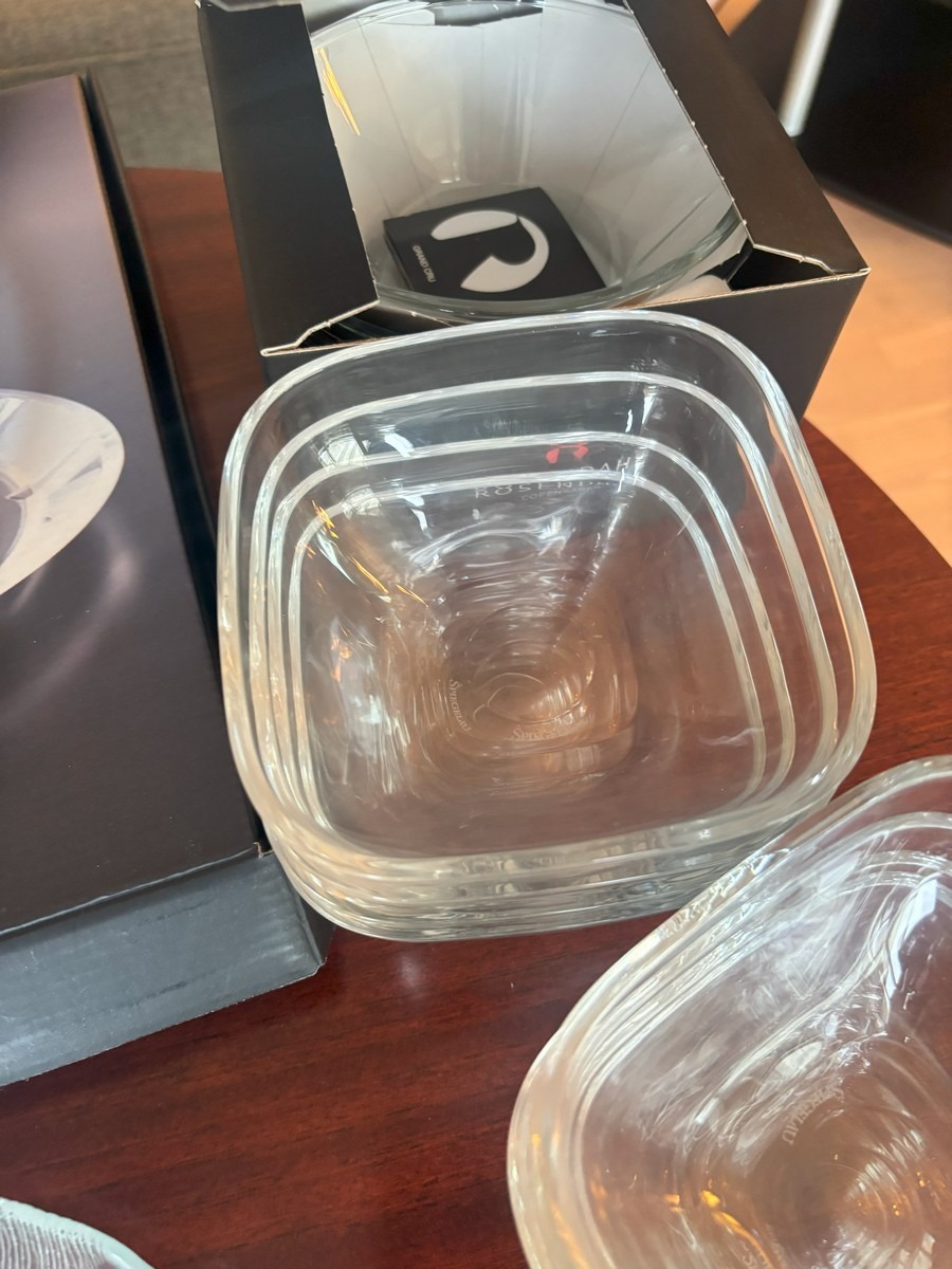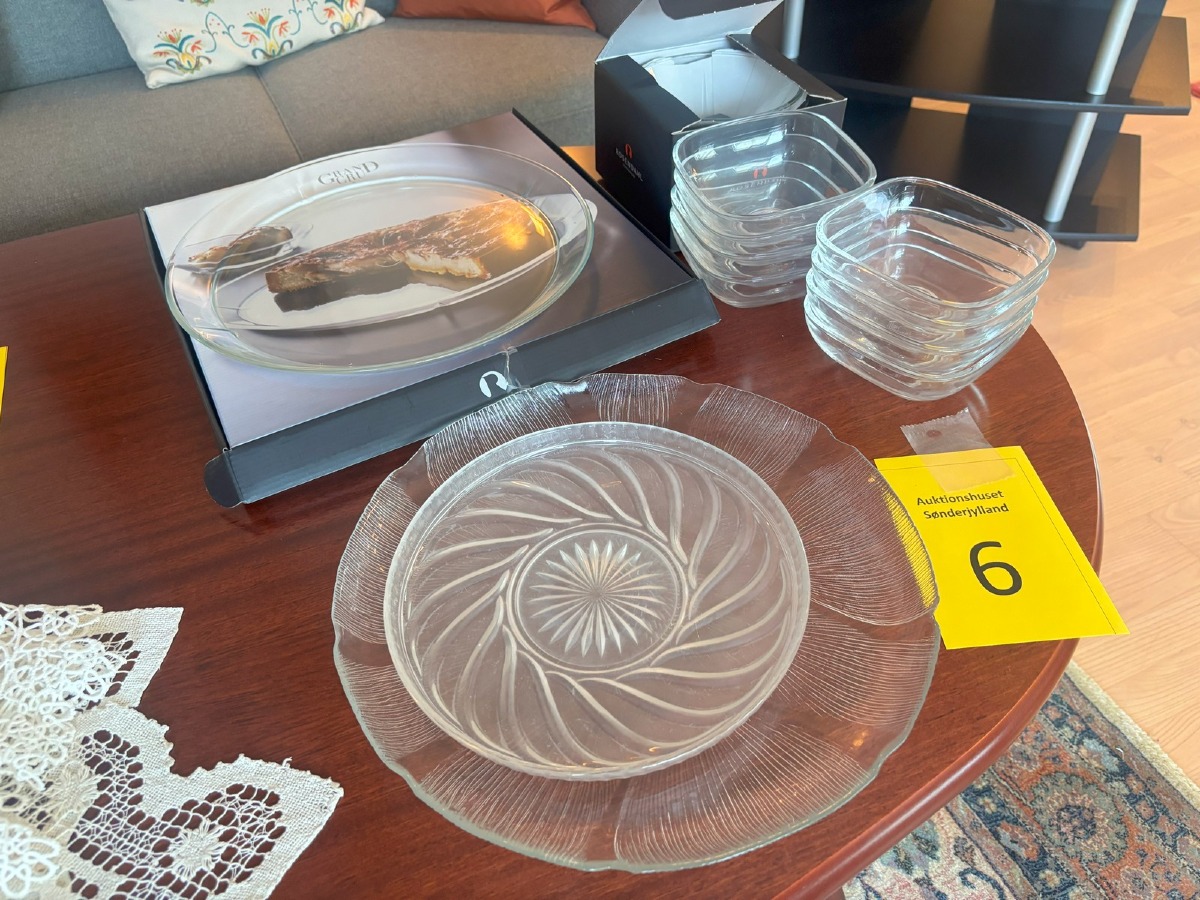 Dele glasservice. rosendahl kagefad, serveringsskåle samt andre fade og skåle.