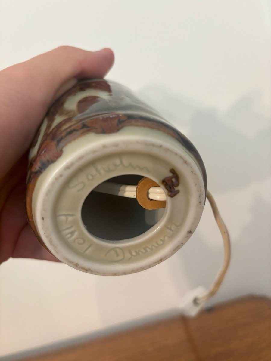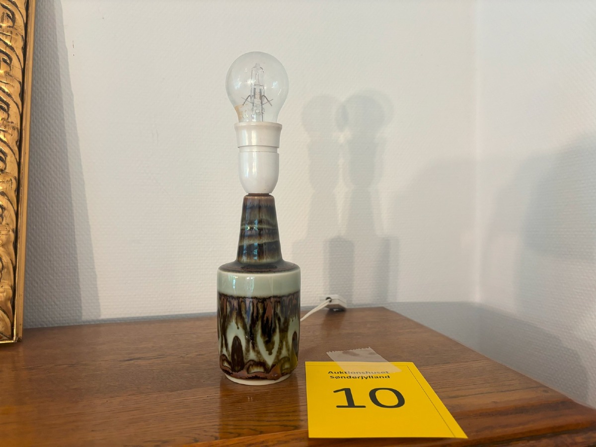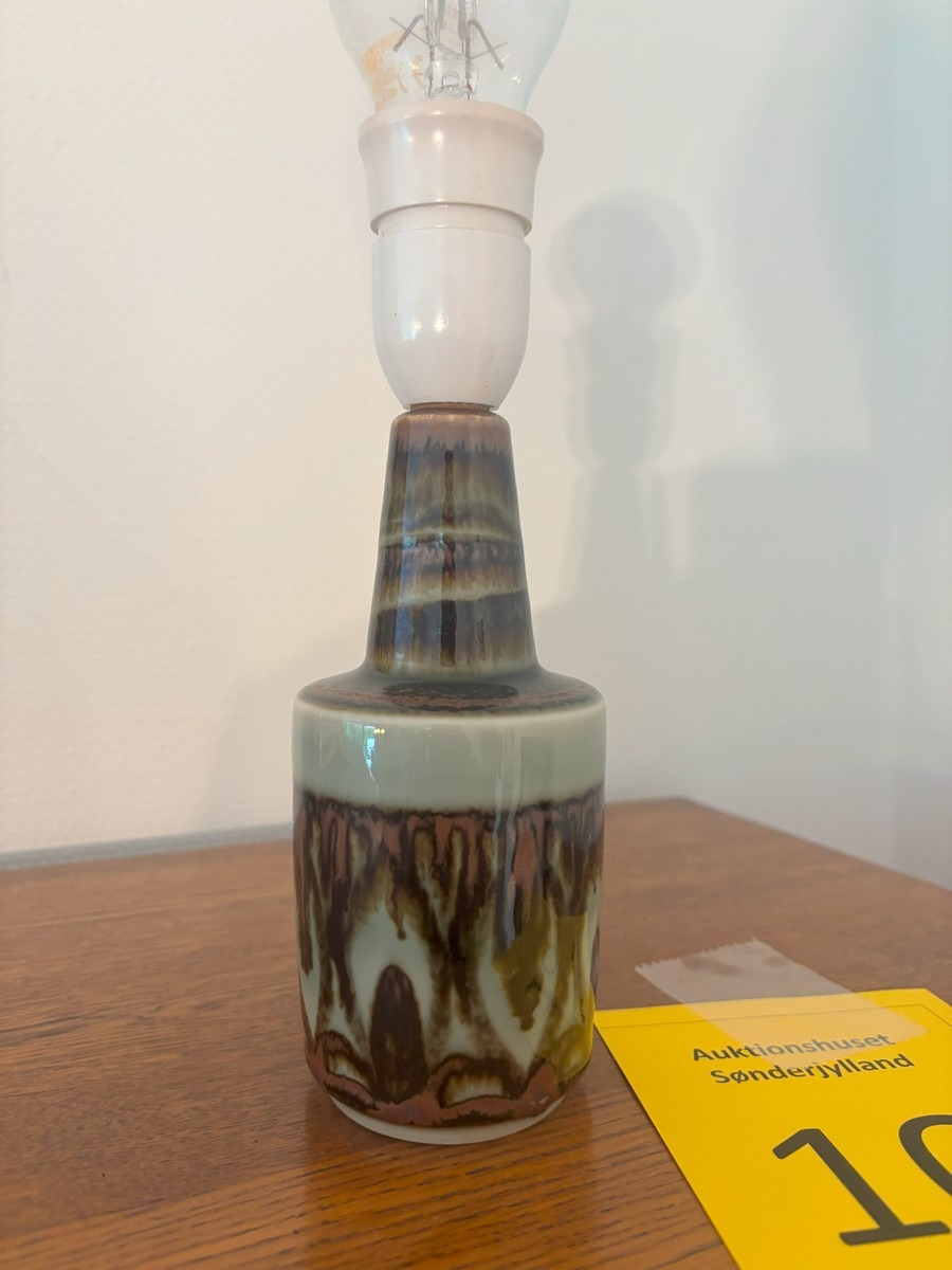 Lille Søholm bordlampe med brun/grøn glasur. Signeret og nummereret i bunden. H. 28 cm.