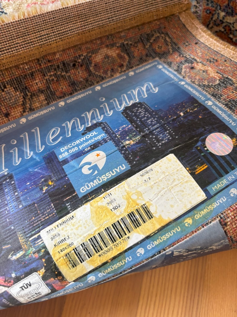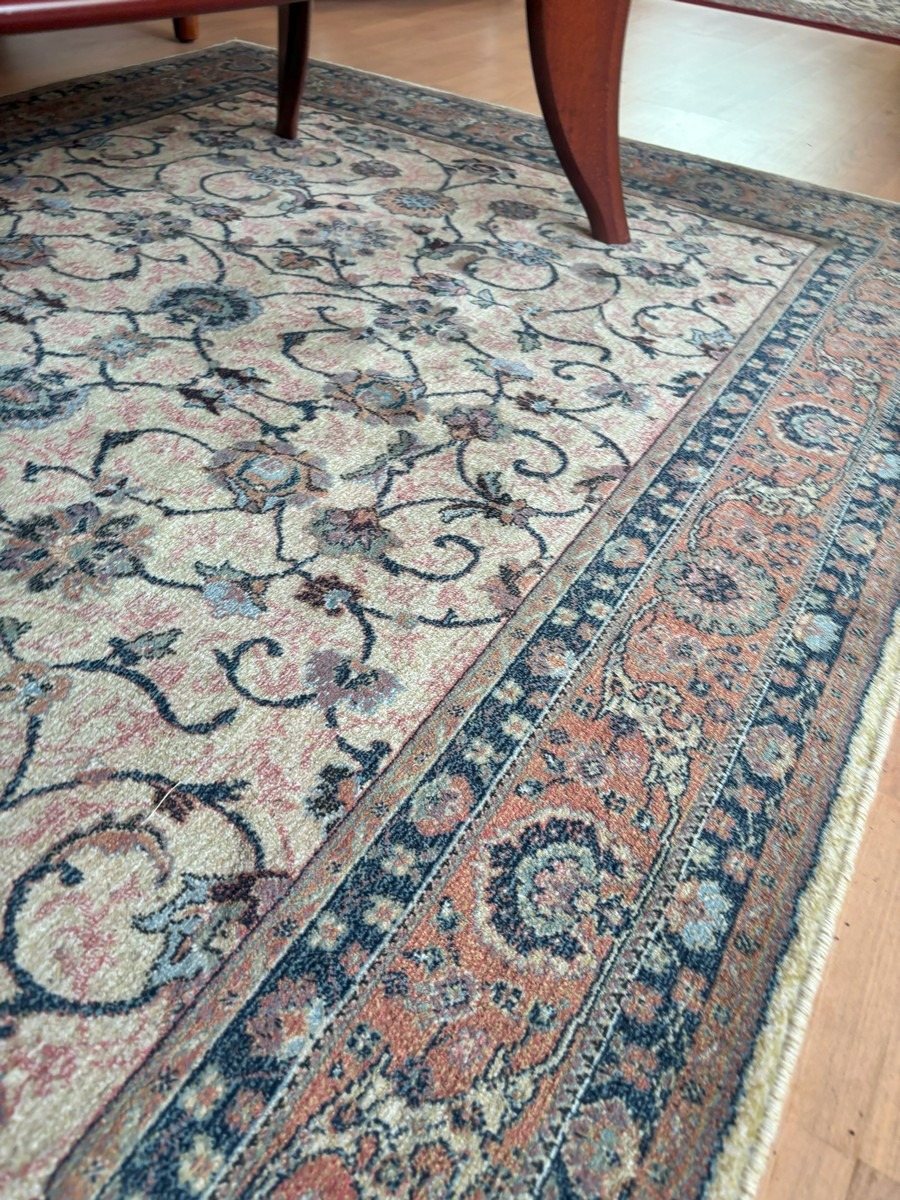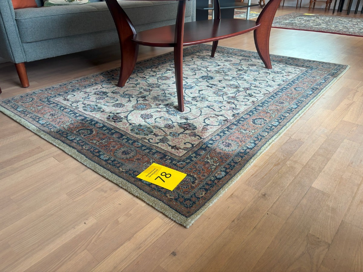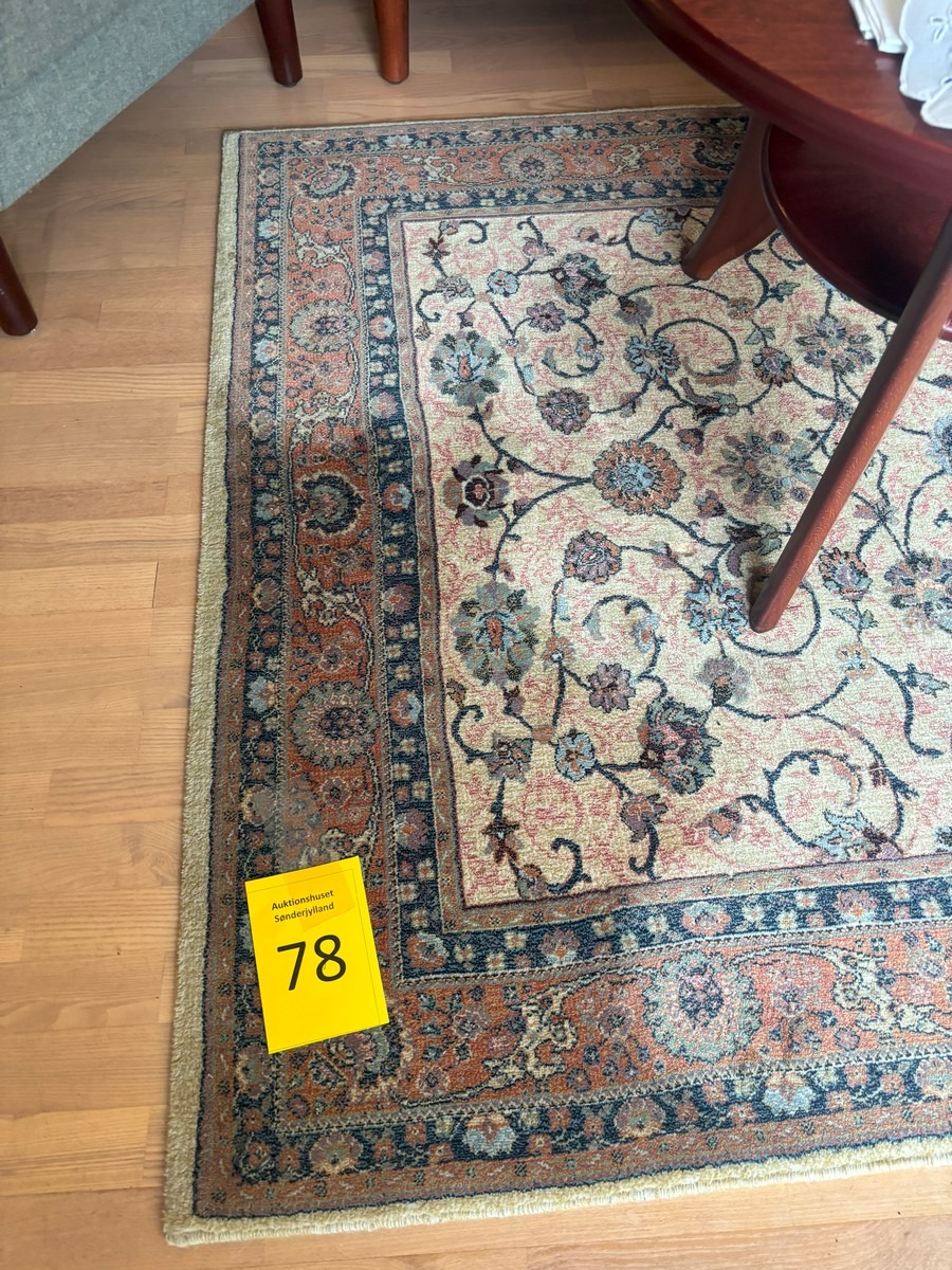 Maskinvævet tæppe af uld med orientalsk mønster. 140 x 200 cm.