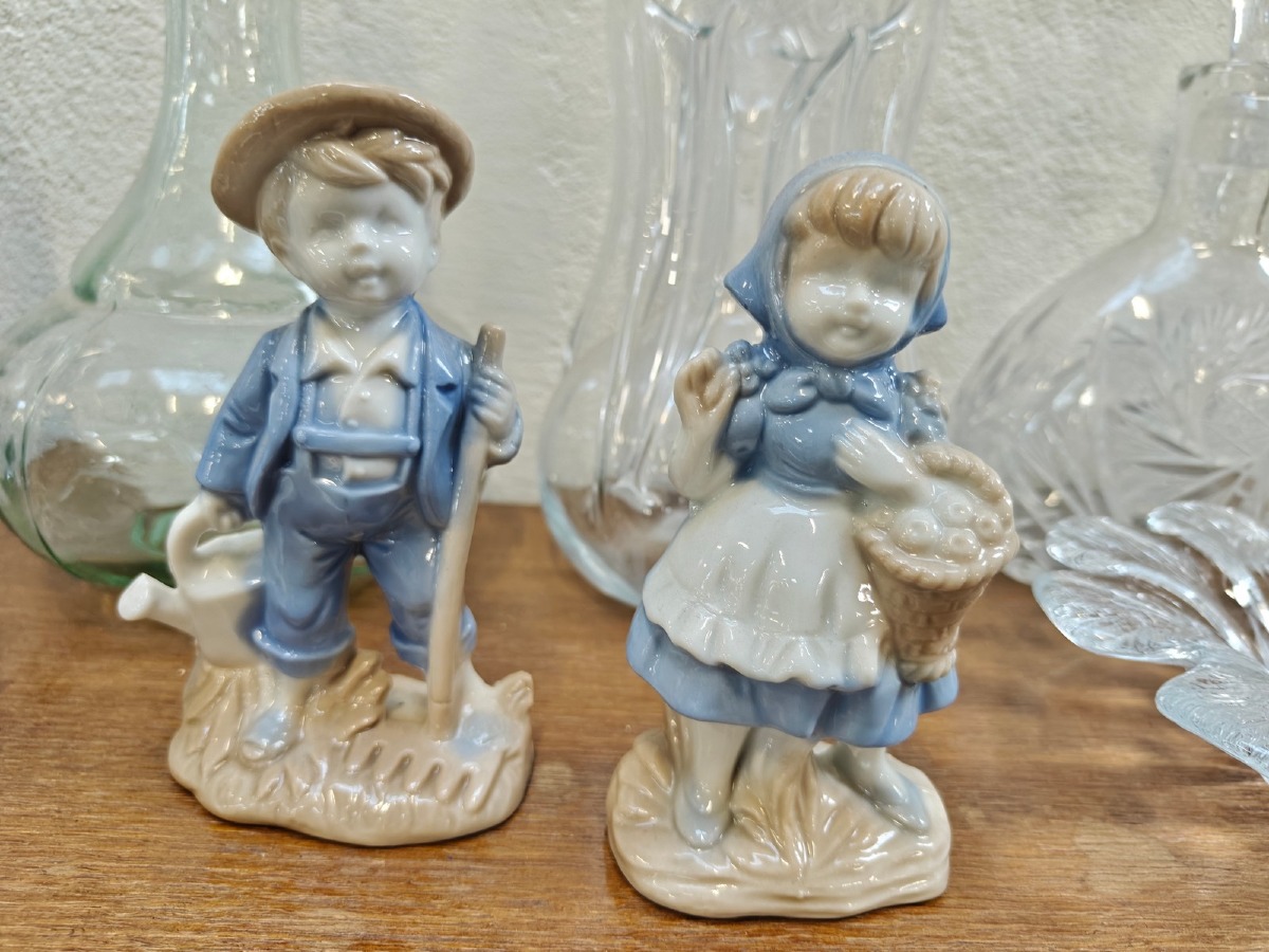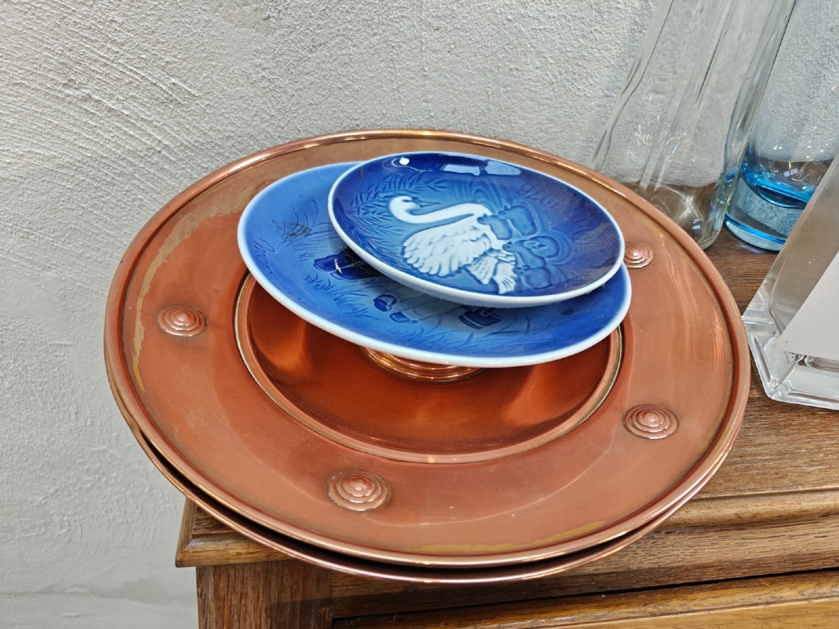 Diverse pyntegenstande.Glas, porcelæn og kobber. Vi garanterer ikke for eventuelle kanthak og andet.