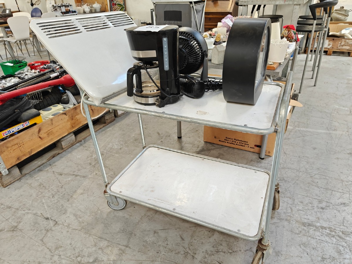 Rullebord samt elektriske apparater. Rullebord af stål med 2 plader. Vi garanterer ikke for effekternes funktionalitet.
