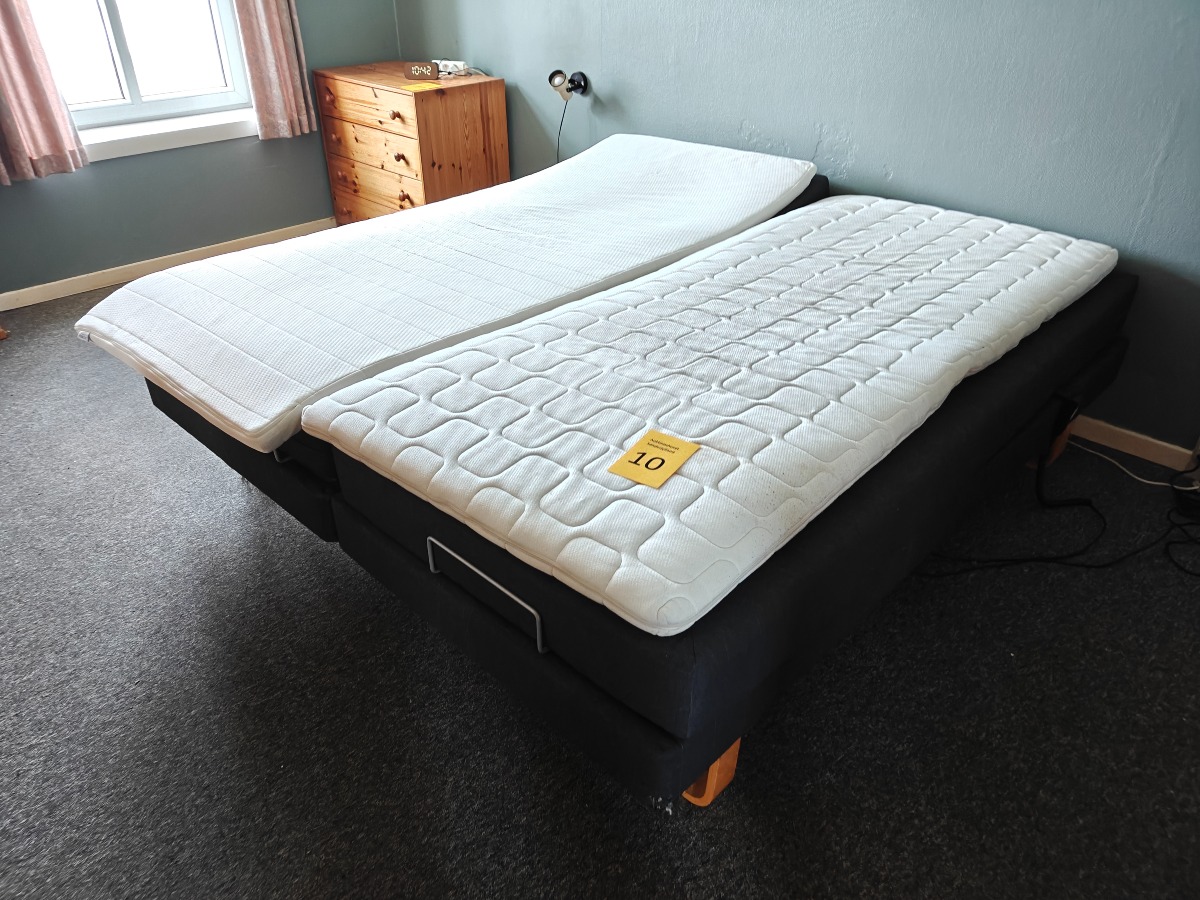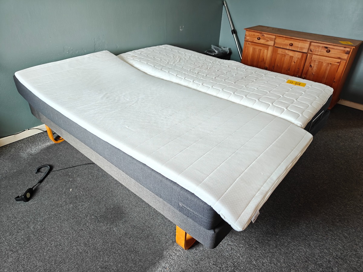 2 elevationssenge på bøgemeder. 90 x 200 cm. Med mindre brugsspor. Står i rygerhjem.