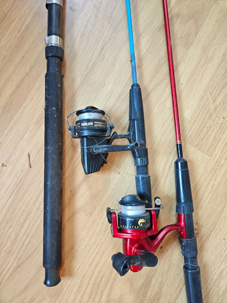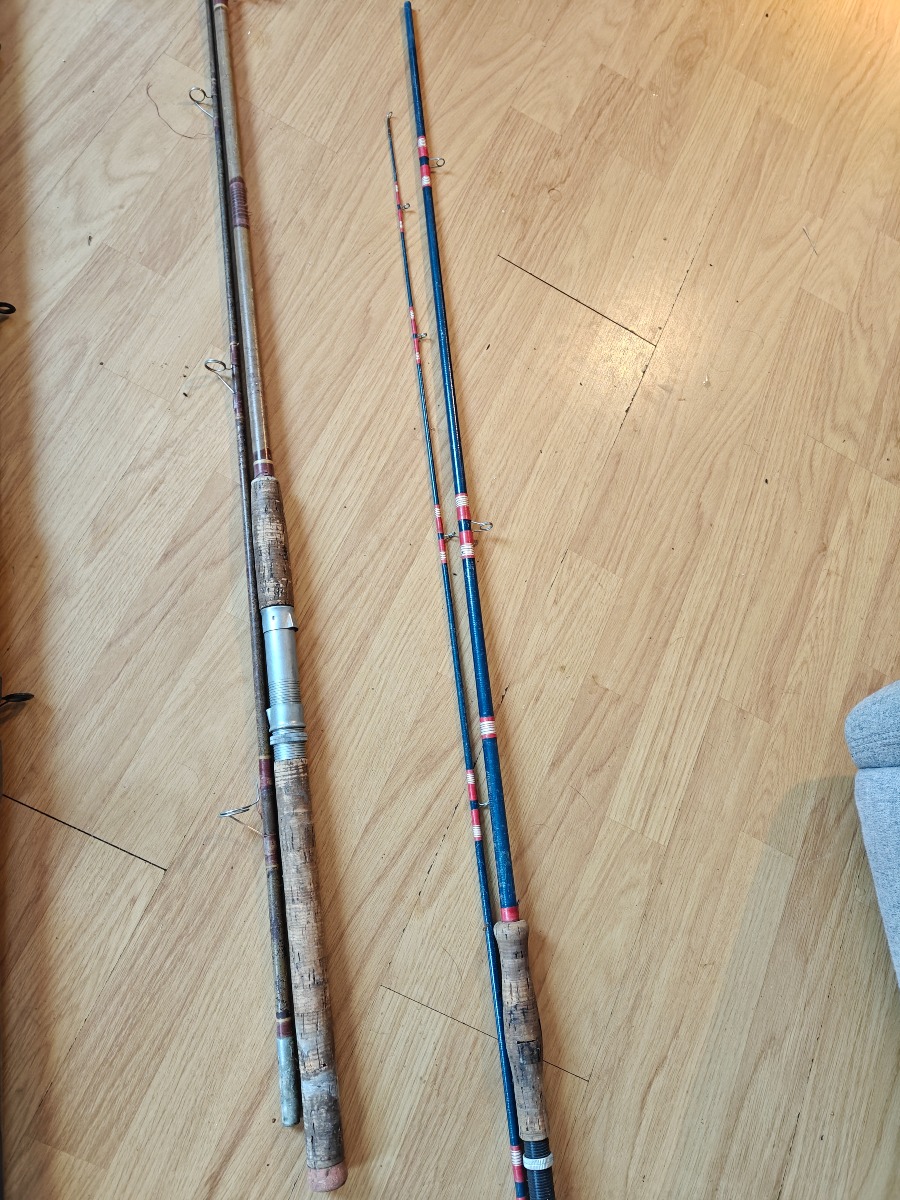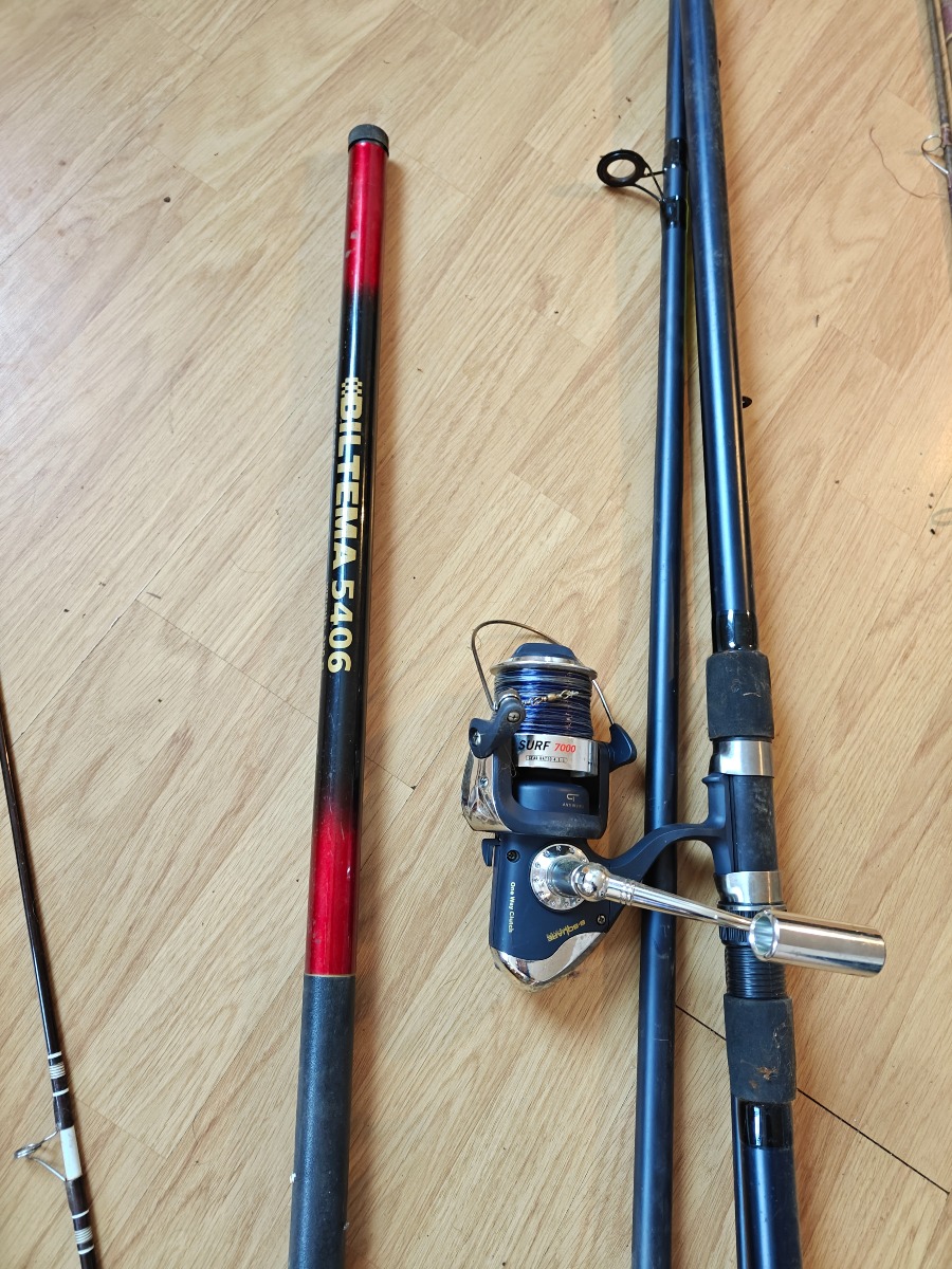 Stort lot fiskestænger samt hjul. 10 stænger og 6 hjul. Både til kyst, vandløb og medefiskeri. Vi garanterer ikke for funktionaliteten.