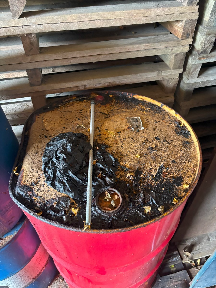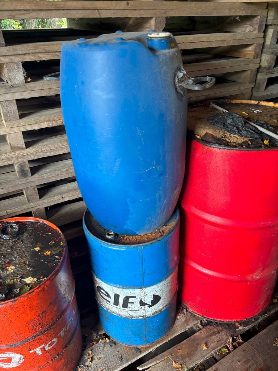 Lille pari tønder & dunke (Med indhold). Der vides ikke med sikkerhed med indhold tønderne og kvaliteten af det. Fra dødsbo
