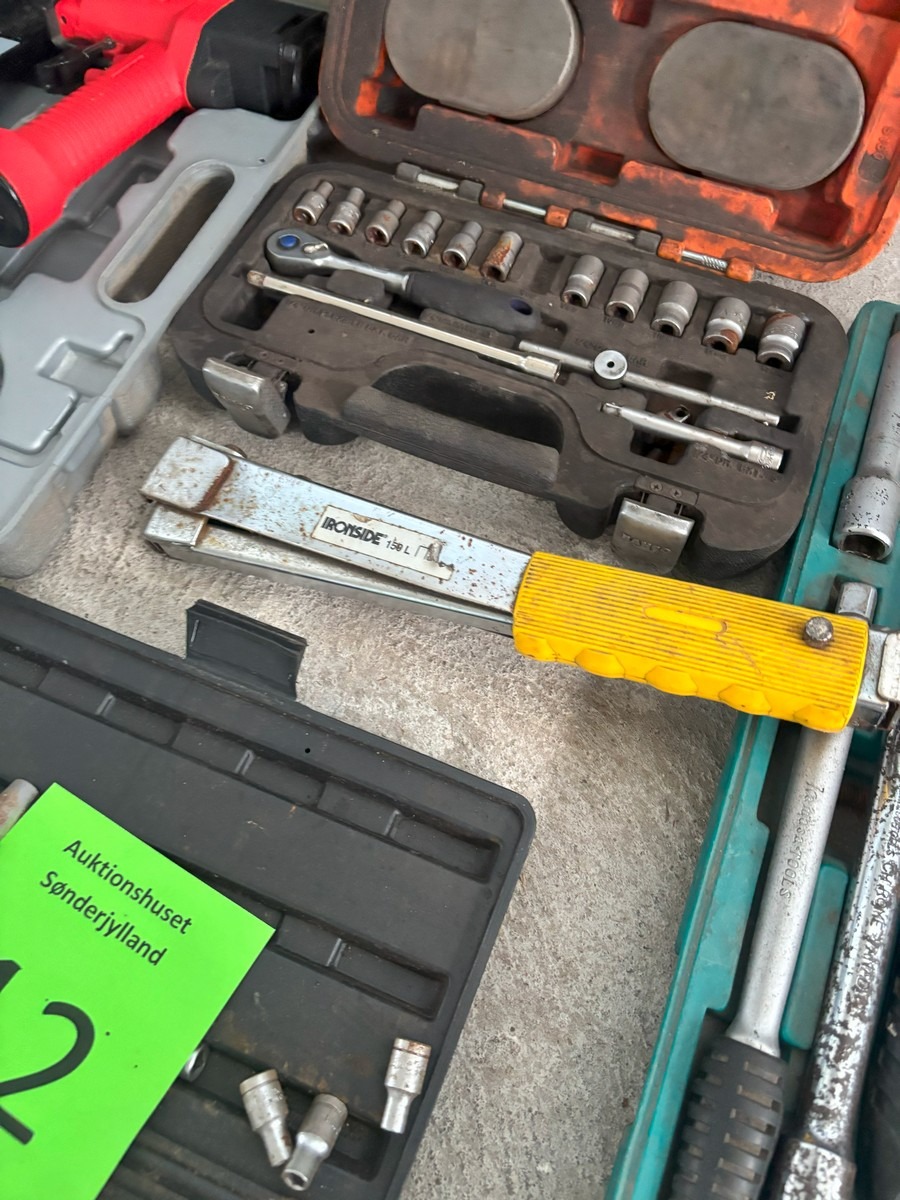 Lille parti værktøj. Topnøglesæt, dasker, mm. Mange dele. Fra dødsbo
