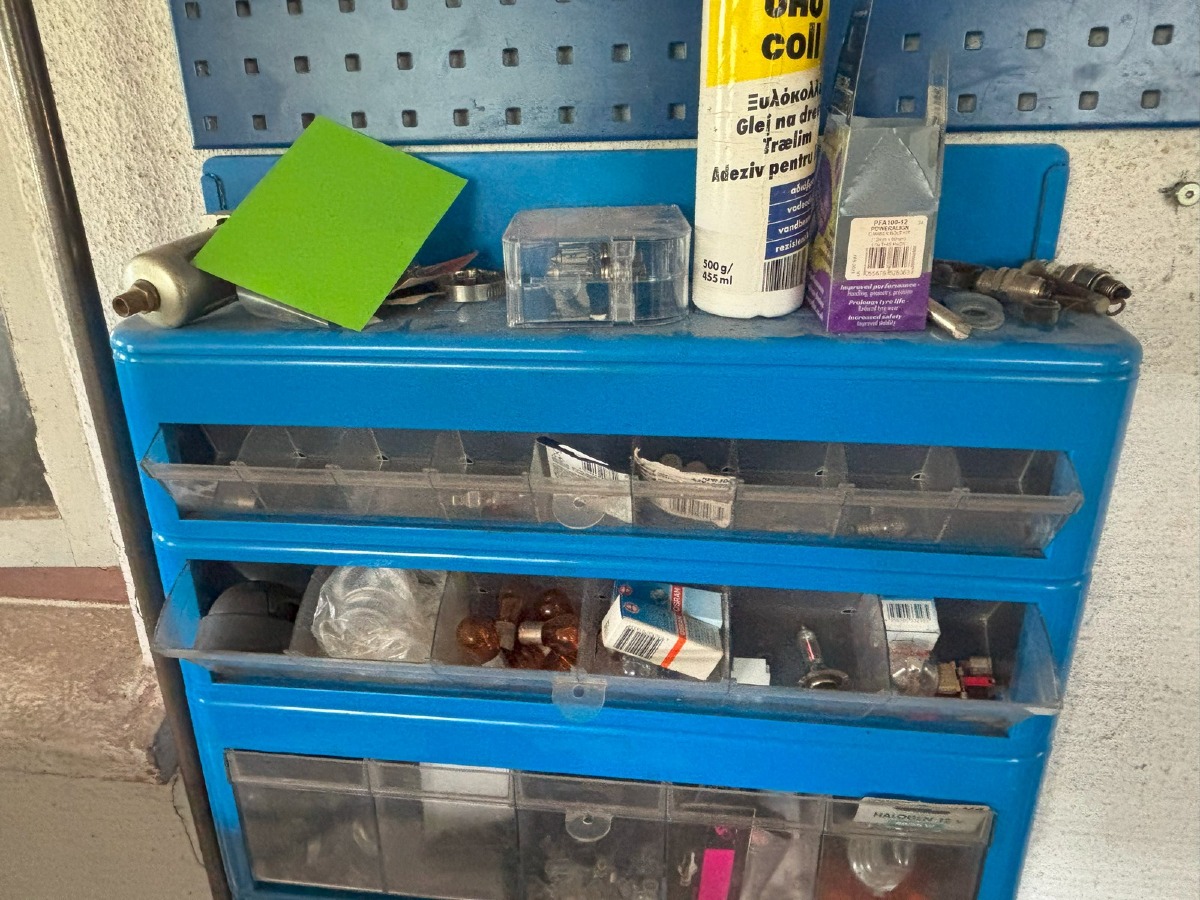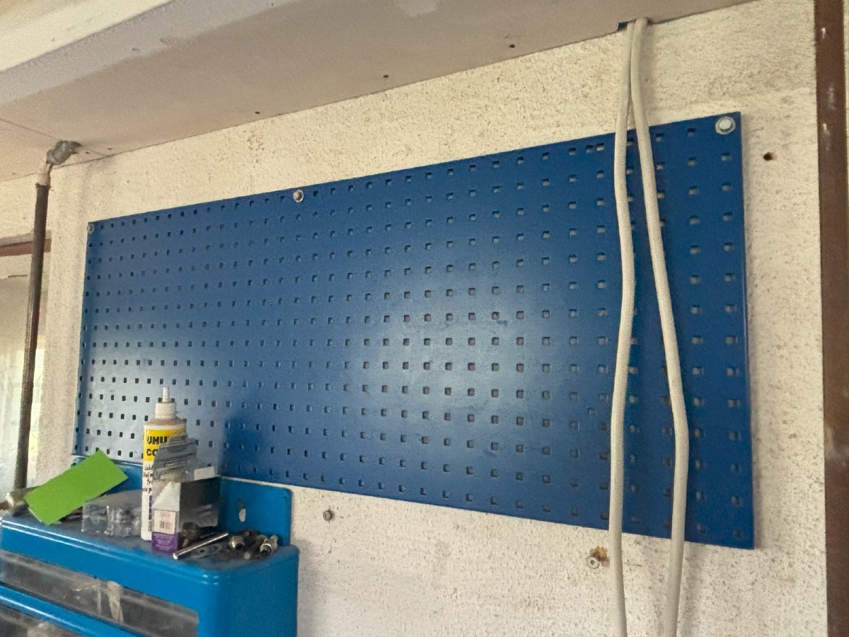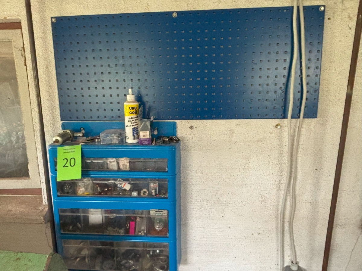 Værkstedstavle & væk sorteringsboks m indhold. Fra dødsbo