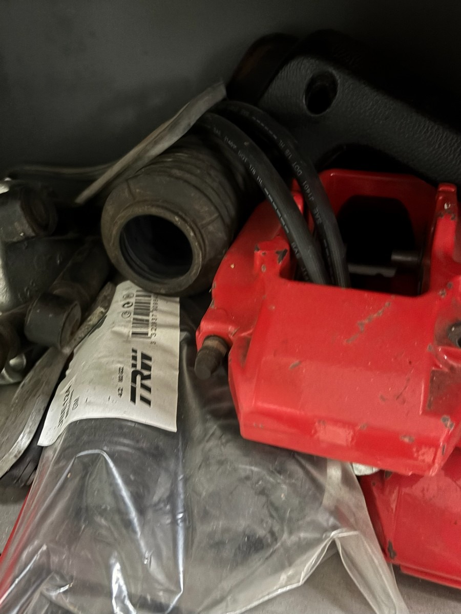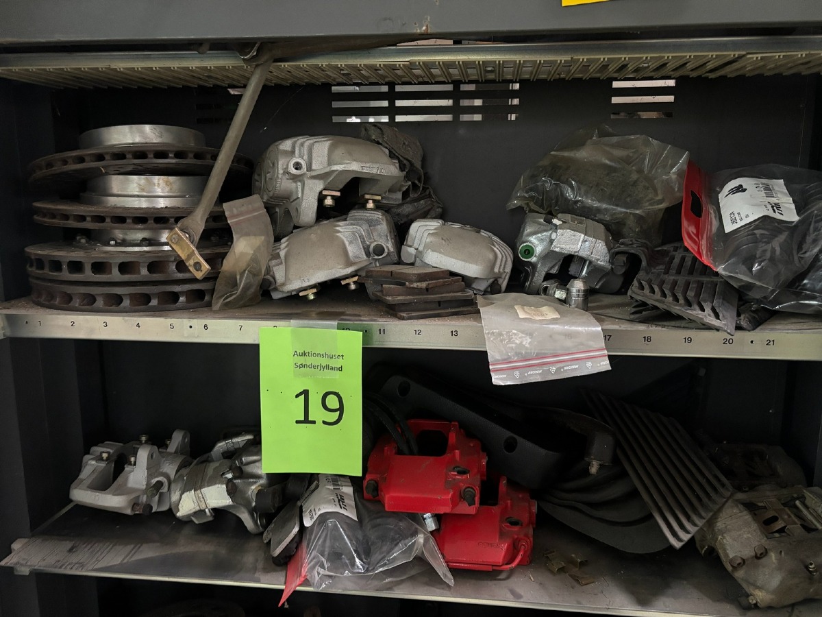 Diverse reservedele (Alt på 2 hylder). Mange dele. Skabet medfølger ikke. Fra dødsbo