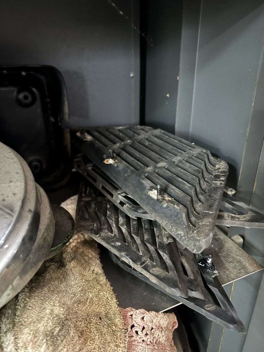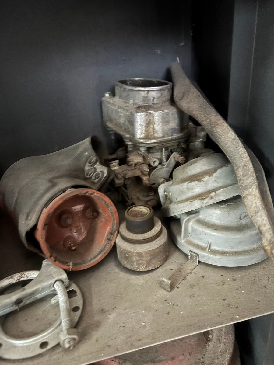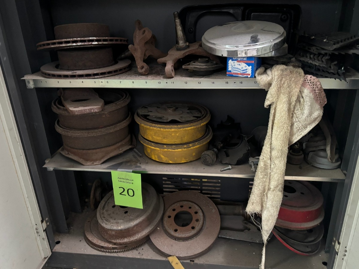 Diverse reservedele (Alt på 3 hylder). Mange dele. Skabet medfølger ikke. Fra dødsbo