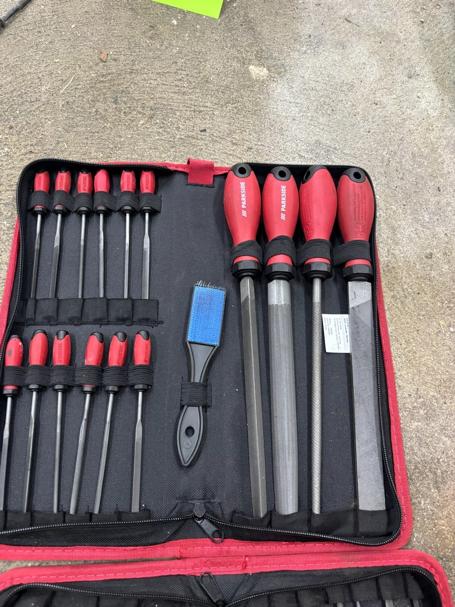 2 sæt Parkside filsæt (Det ene komplet ). Fra dødsbo