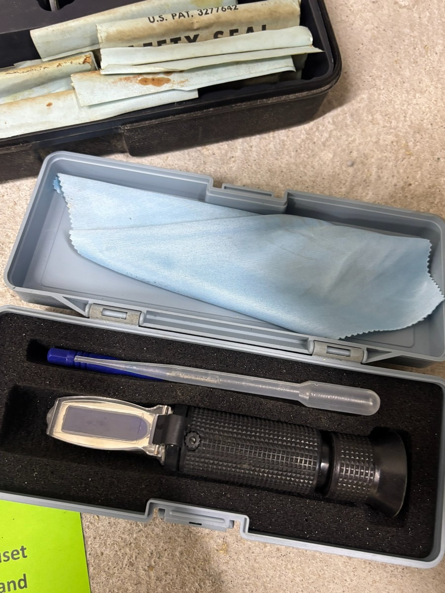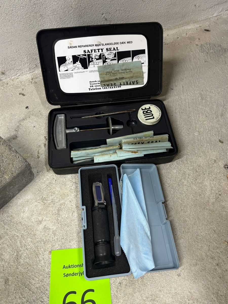 Dækreparationssæt & refraktometer. Fra dødsbo