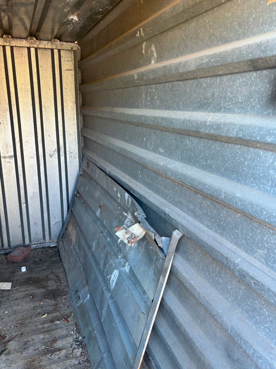 Big Box container 300 x210 x 210 cm. Fremstår med gennemtæring i bl.a. "tag". Fra dødsbo.