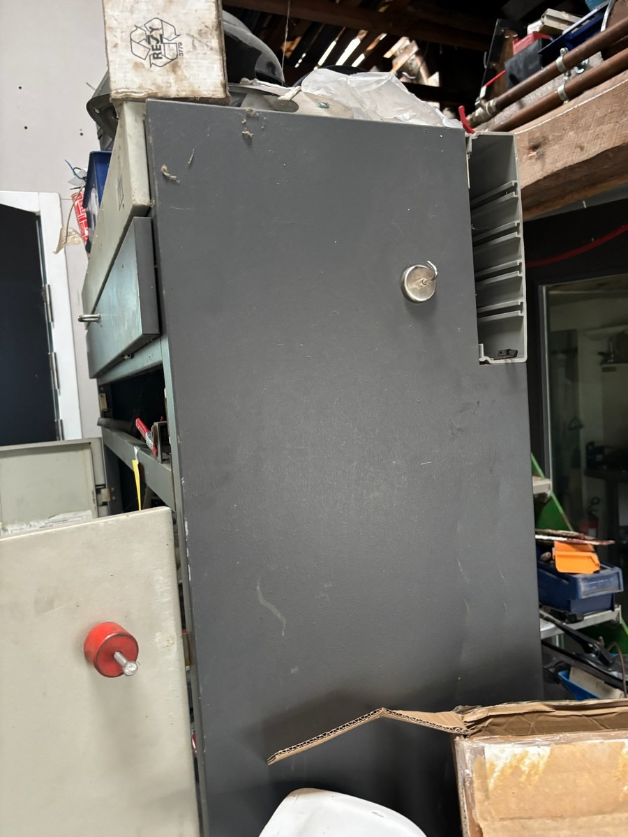 ITT metal værktøjsskab (Uden indhold). Måler ca: 107 x 206 x 30 cm. Uden nøgle til. Fra dødsbo