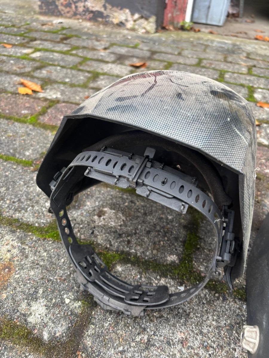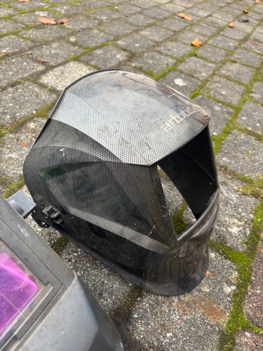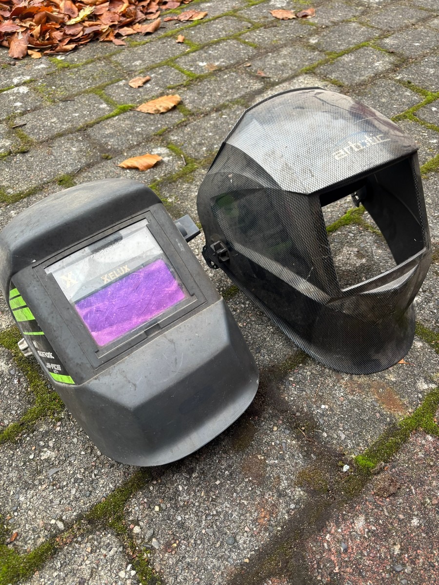 2 stk. Svejsehjelm. Det ene mangler glas. Fra dødsbo
