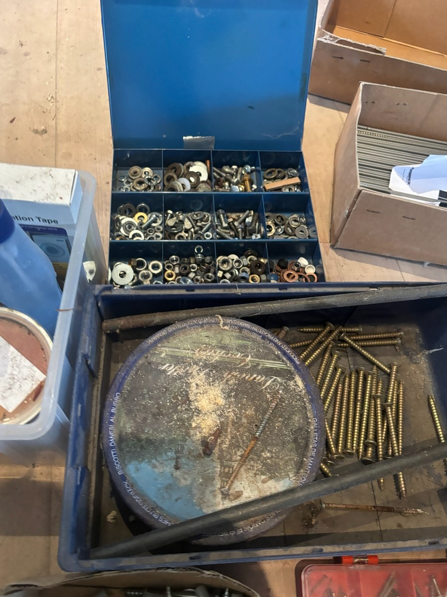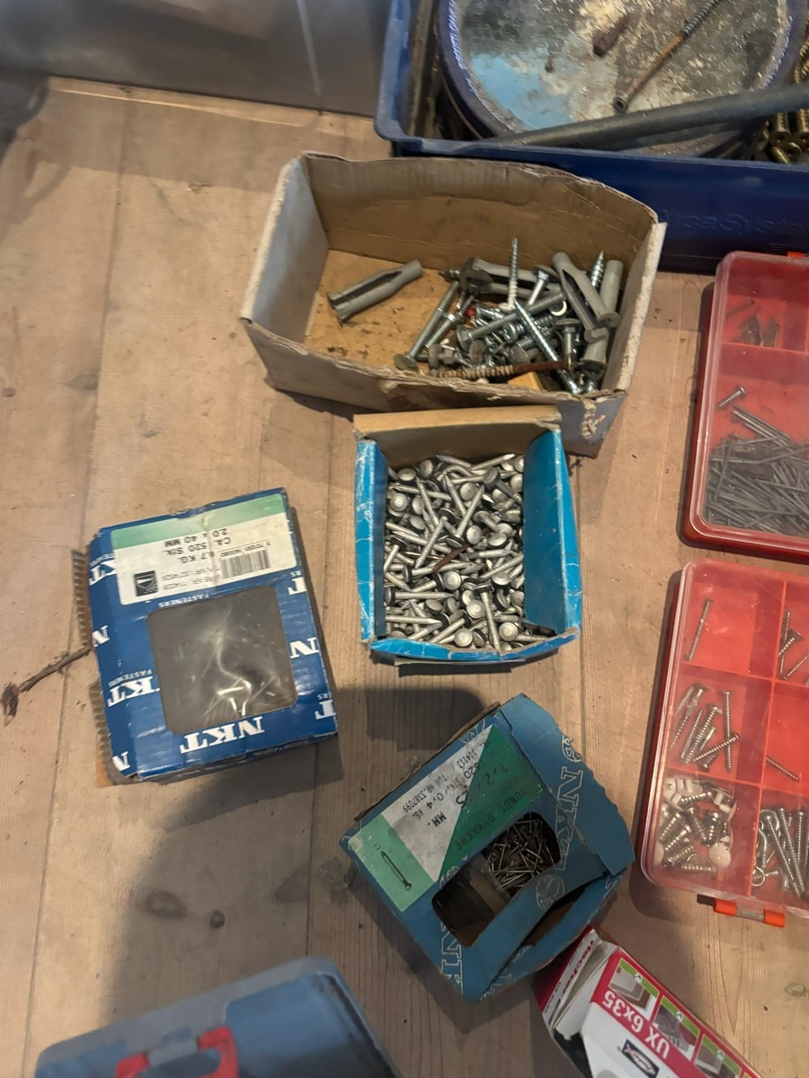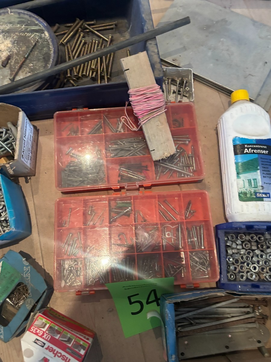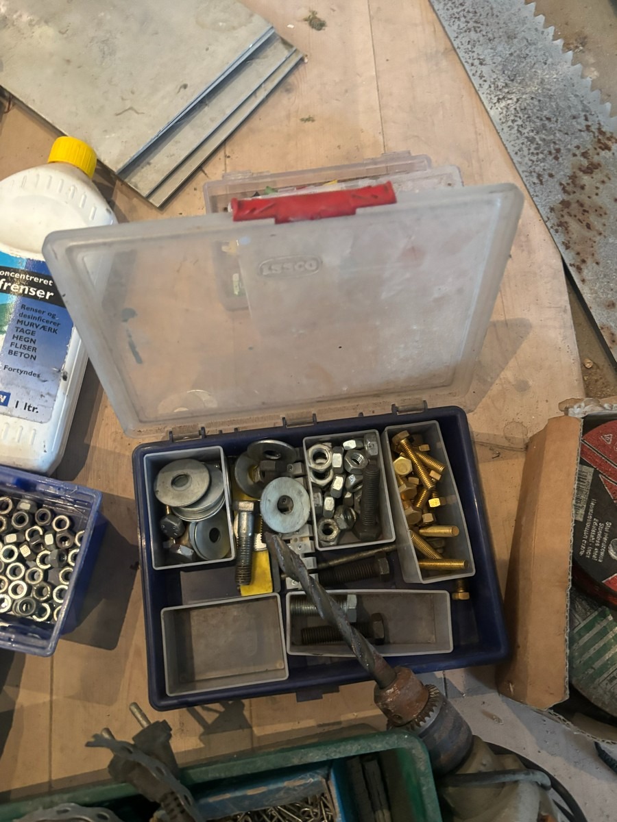 Diverse skruer, beslag, mm. Mange dele. Fra dødsbo