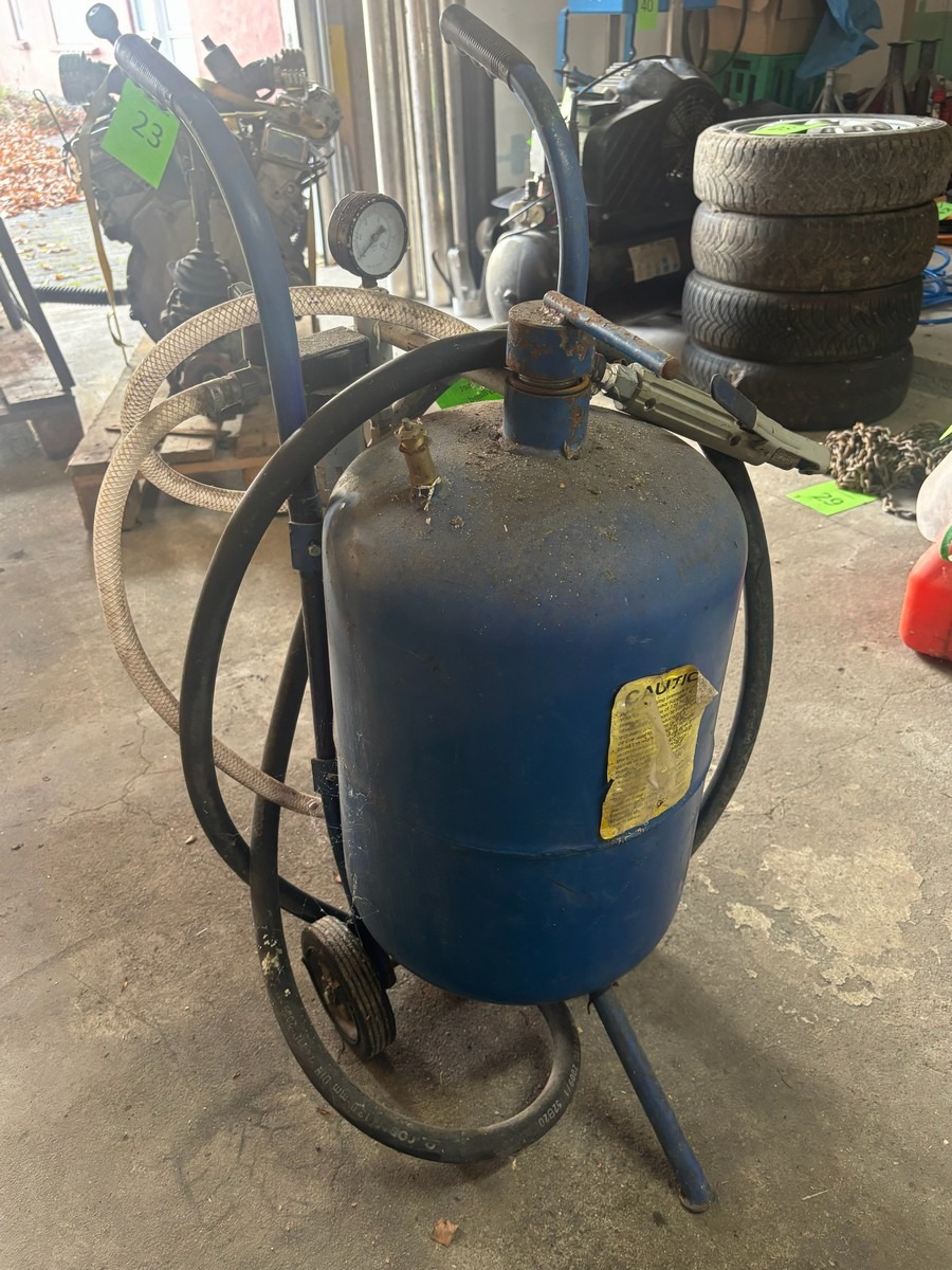 Lille sandblæser på stativ med hjul. Fra dødsbo