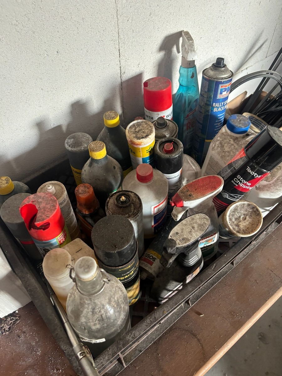 Rengøringsmidler, spraydåser, mm. Mange dele. Fra dødsbo
