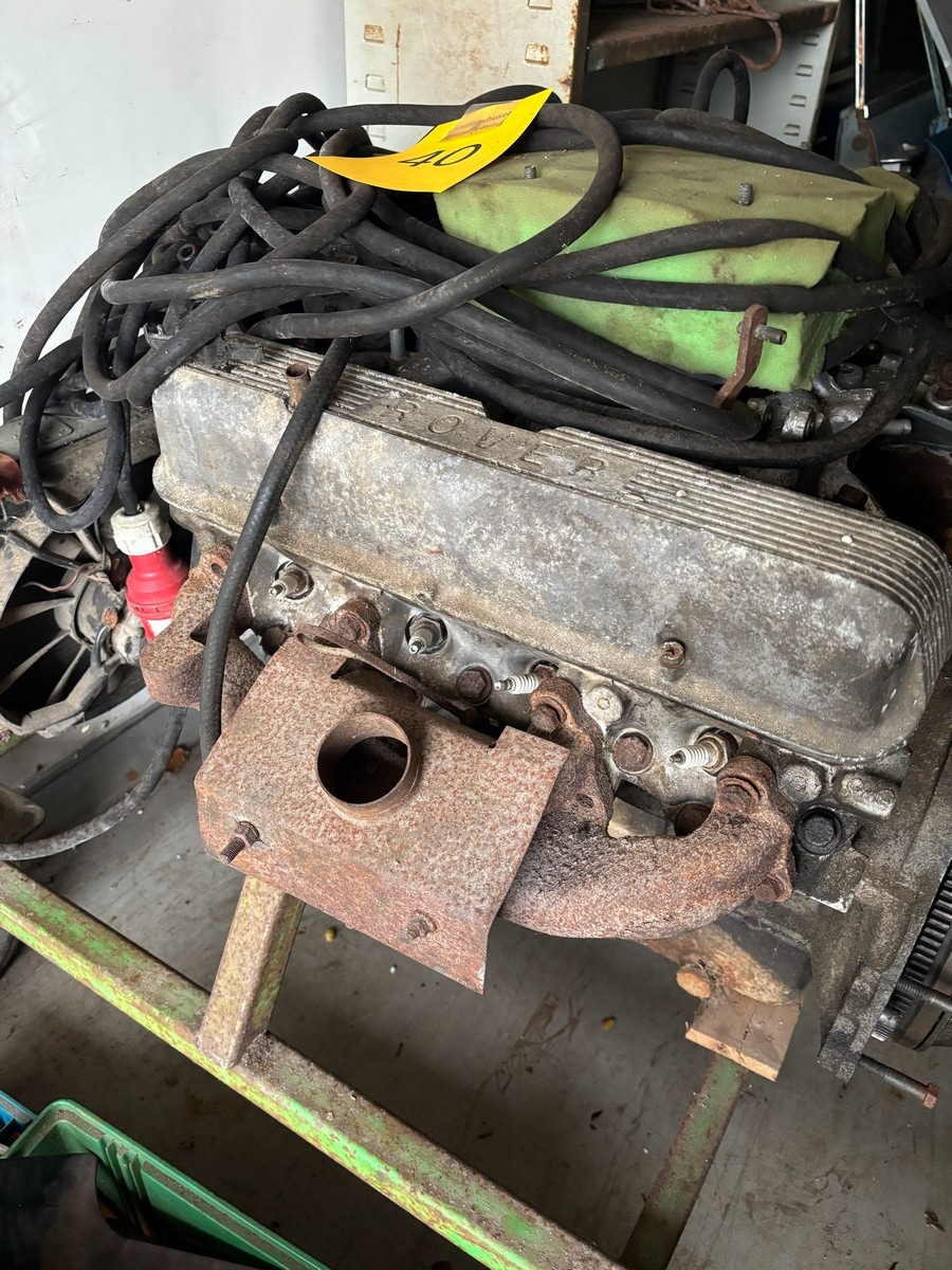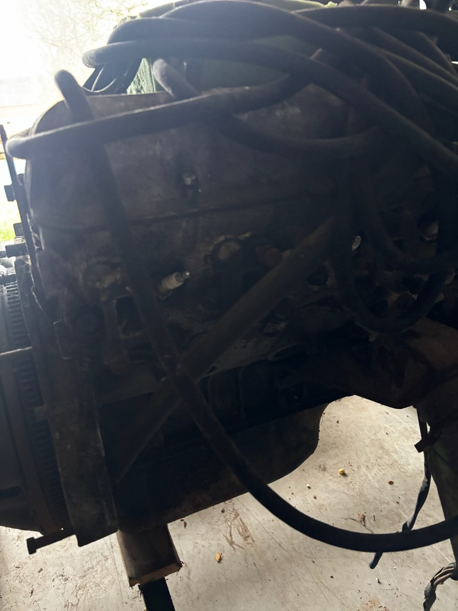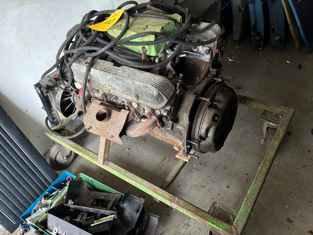 Rover V8 motor på stativ på hjul. Ikke afprøvet. Brugt, fra dødsbo.