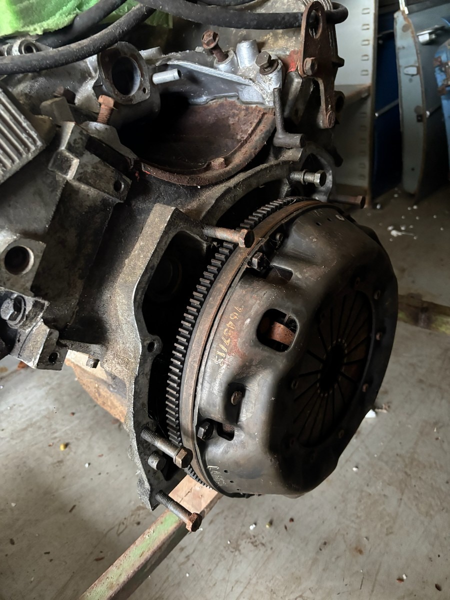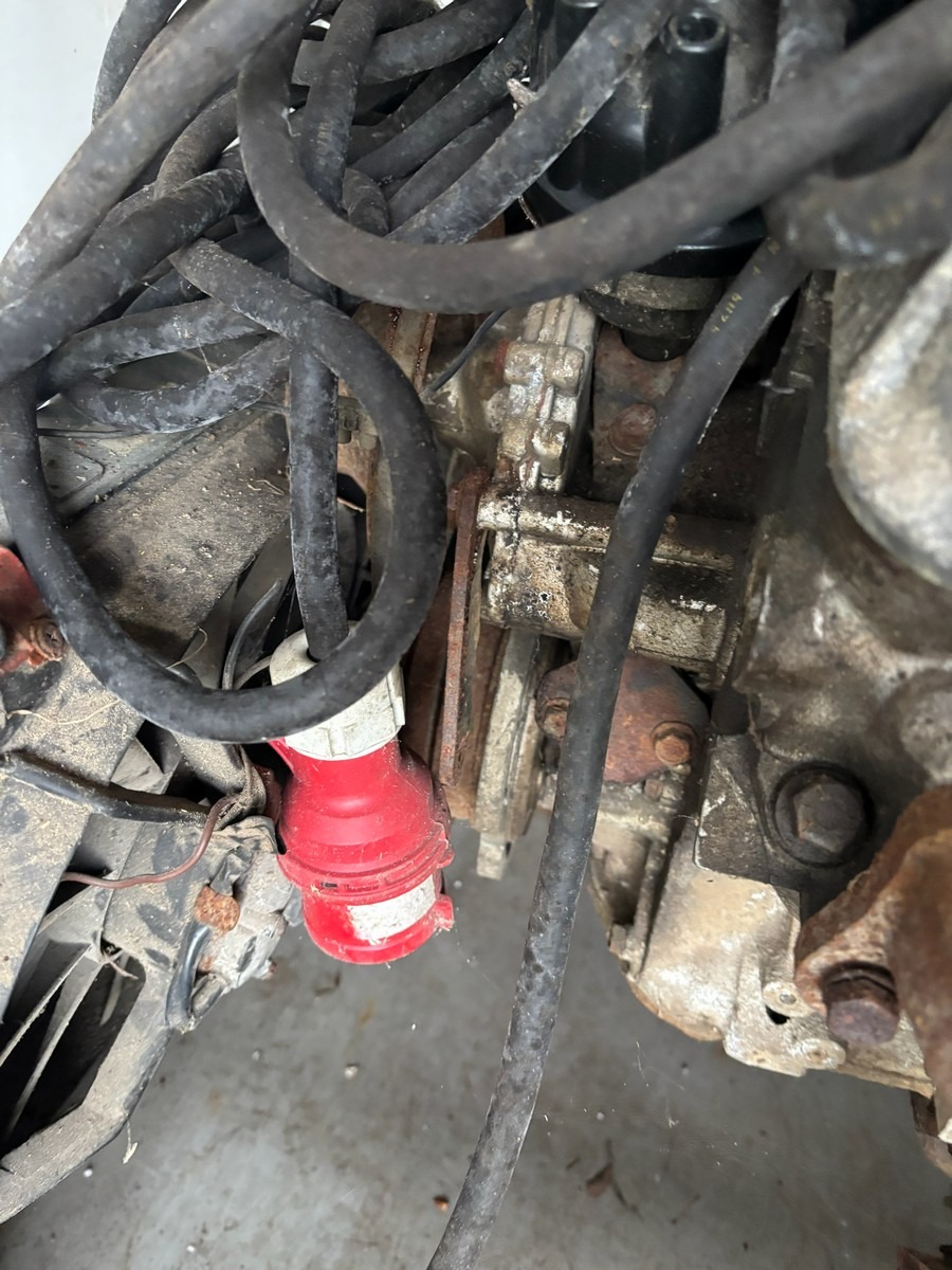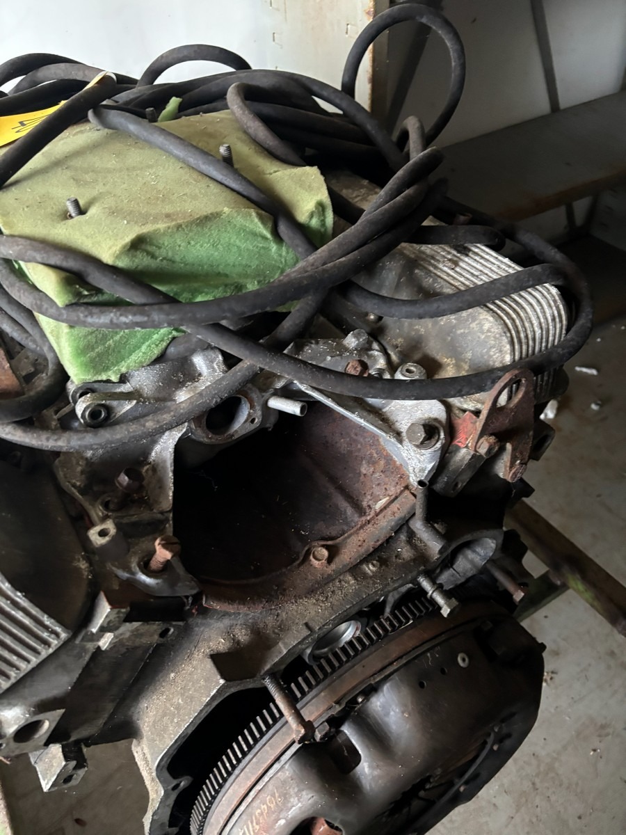 Rover V8 motor på stativ på hjul. Ikke afprøvet. Brugt, fra dødsbo.